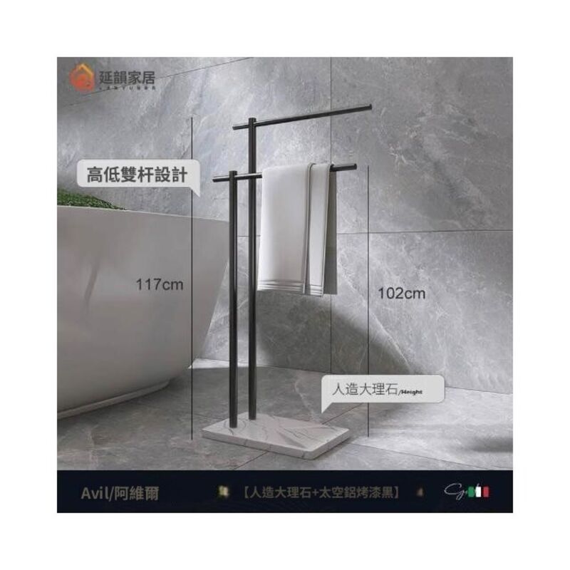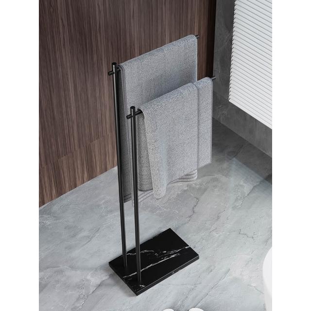 浴室置物架 浴室收納架 毛巾架 槍灰落地大理石浴巾架衛生間掛衣桿浴室浴缸旁置物架立式毛巾掛架