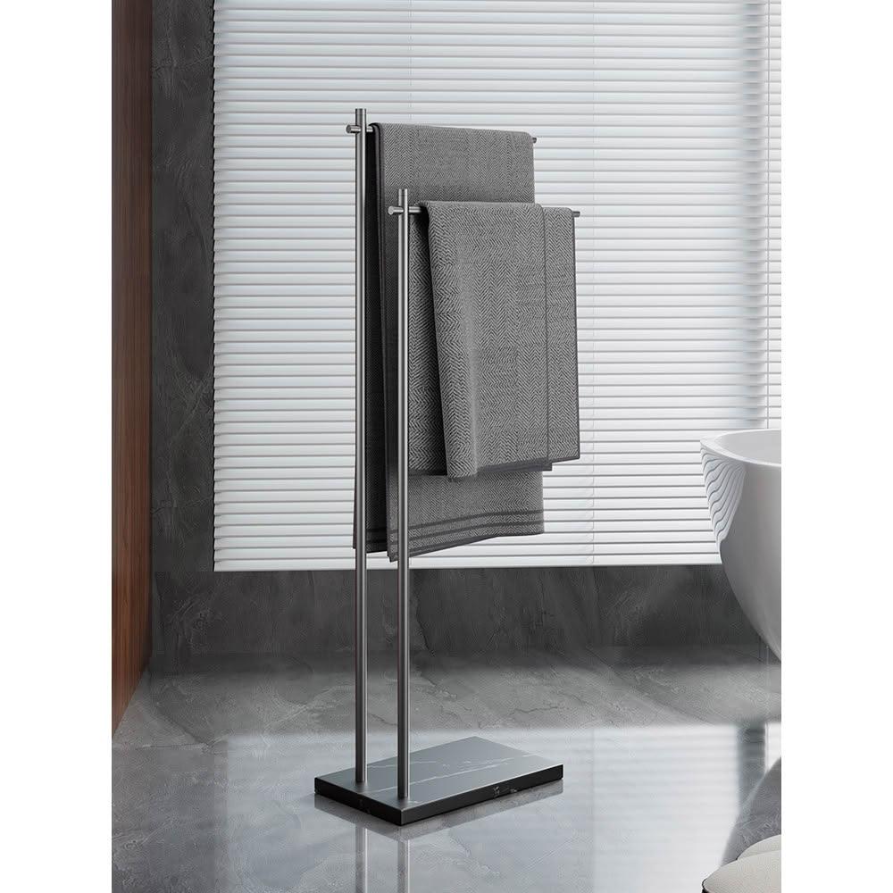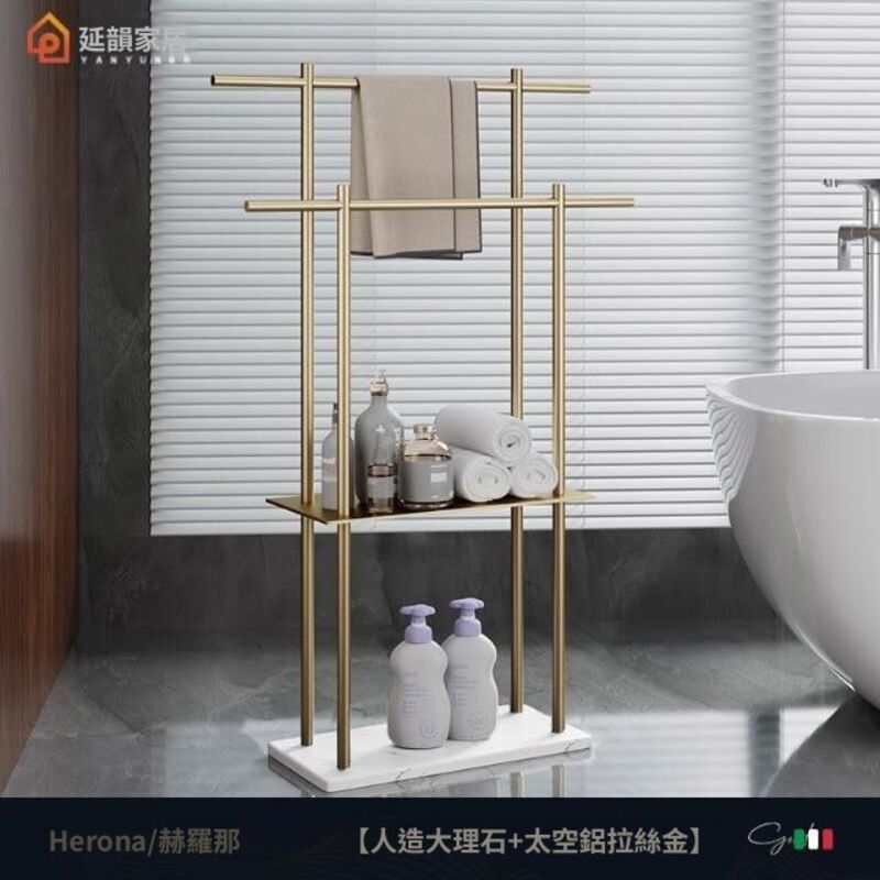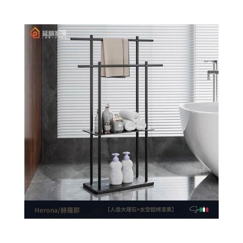 浴室置物架 浴室收納架 毛巾架 槍灰落地大理石浴巾架衛生間掛衣桿浴室浴缸旁置物架立式毛巾掛架
