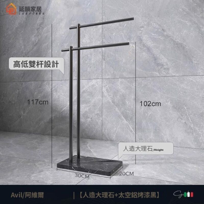 浴室置物架 浴室收納架 毛巾架 槍灰落地大理石浴巾架衛生間掛衣桿浴室浴缸旁置物架立式毛巾掛架