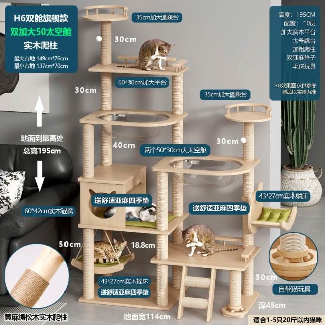 貓爬架 貓窩 貓抓架 大型實木貓爬架貓窩貓樹一體四季通用貓架子貓跳台貓抓板貓咪用品