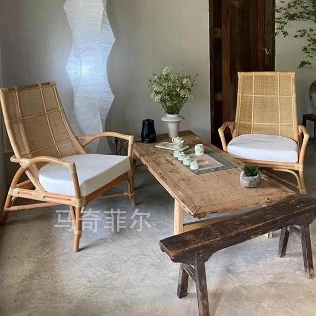 藤椅 藤編椅 老人椅 藤編沙發椅天然真藤休閒椅現代簡約日式設計師躺椅民宿藤編椅子