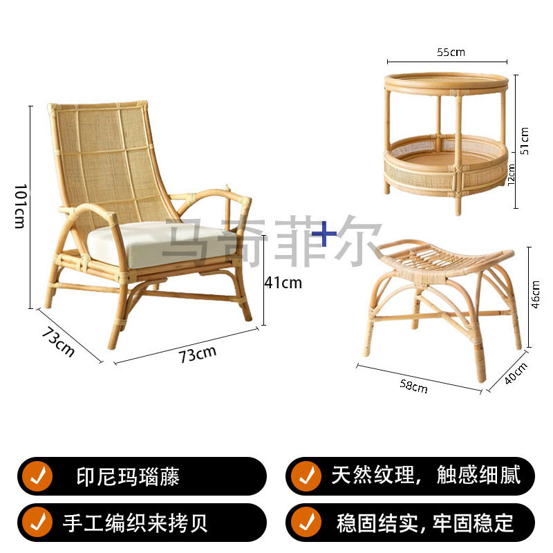 藤椅 藤編椅 老人椅 藤編沙發椅天然真藤休閒椅現代簡約日式設計師躺椅民宿藤編椅子