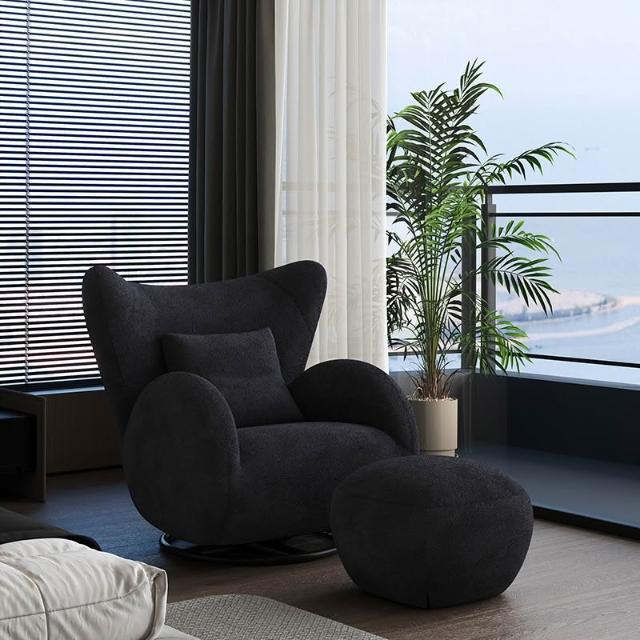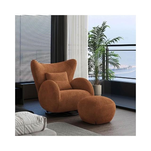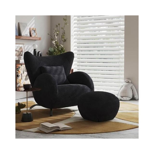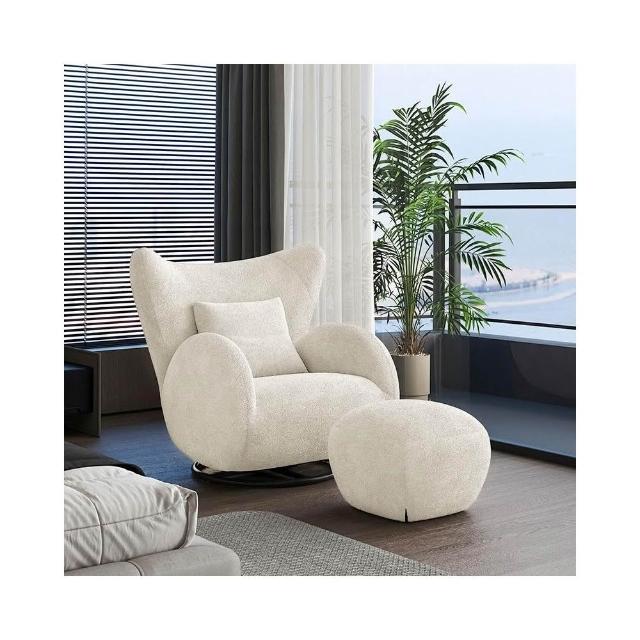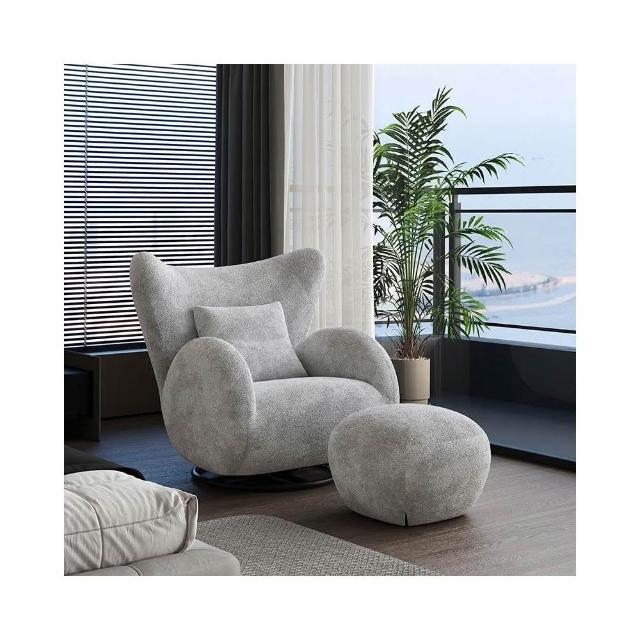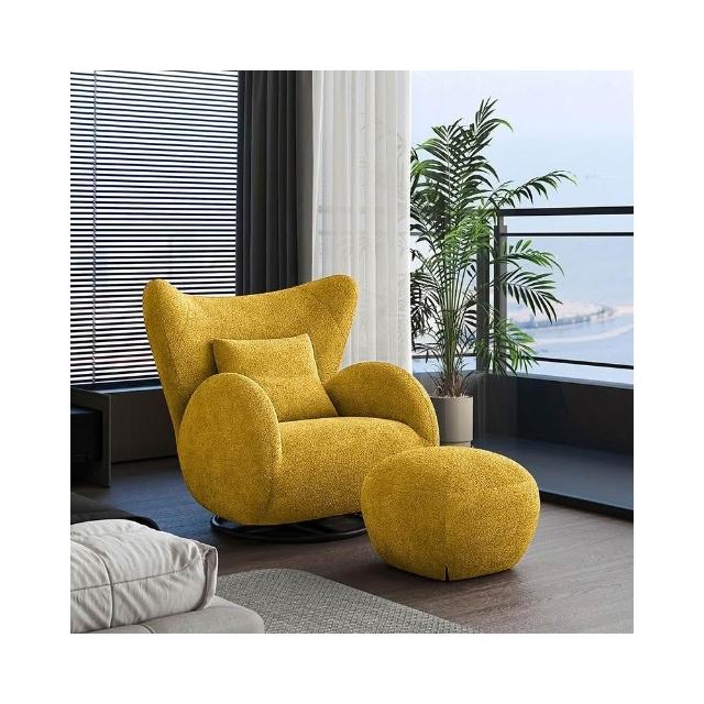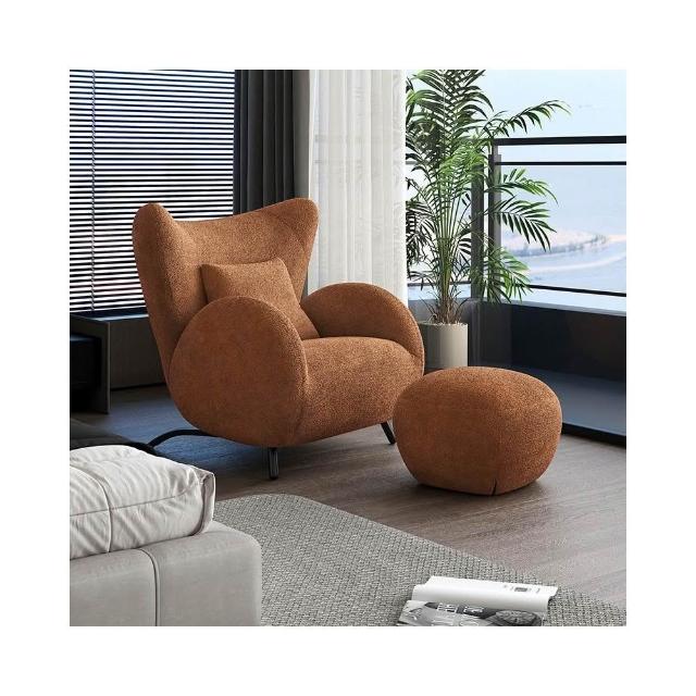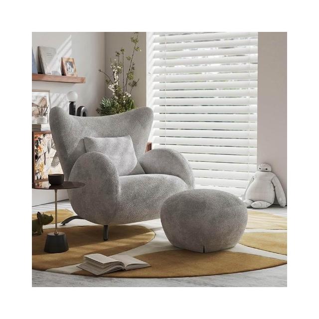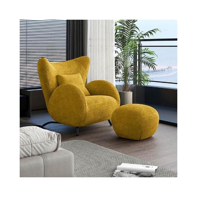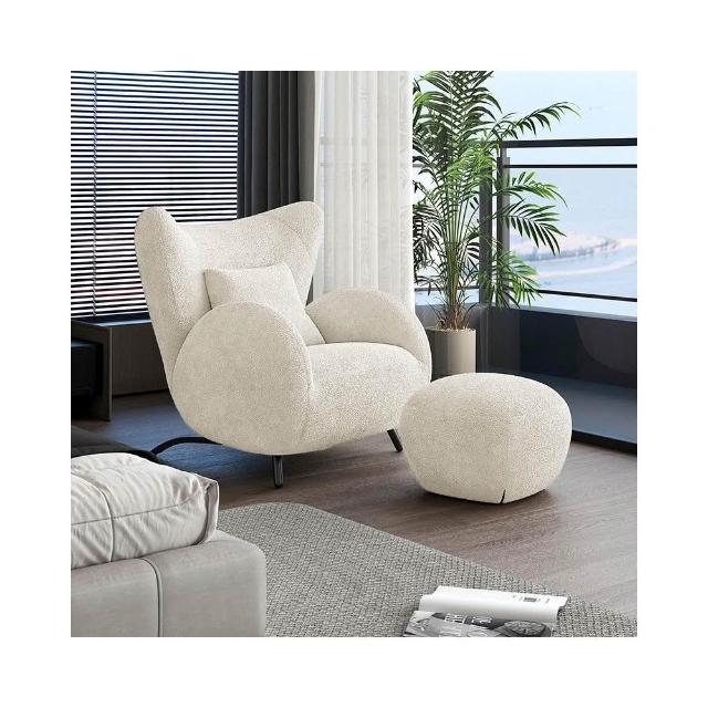 奶油風單人沙發椅 懶骨頭沙發 布藝休閒椅 客廳沙發 中古風臥室單椅 家用懶人沙發
