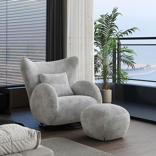 奶油風單人沙發椅 懶骨頭沙發 布藝休閒椅 客廳沙發 中古風臥室單椅 家用懶人沙發