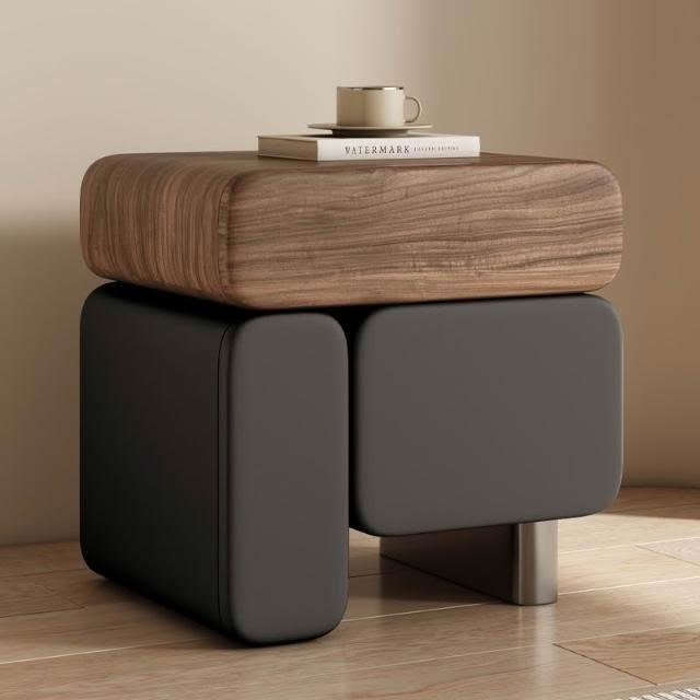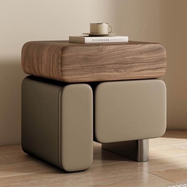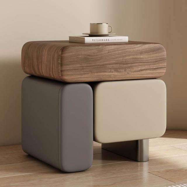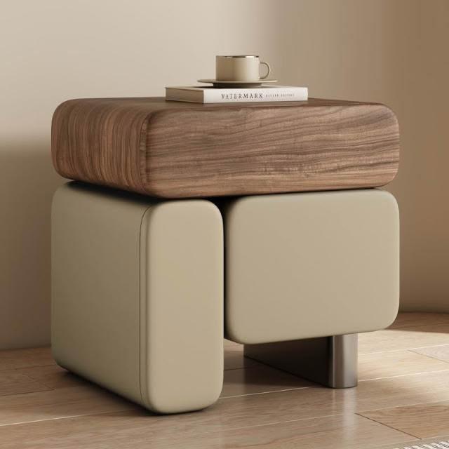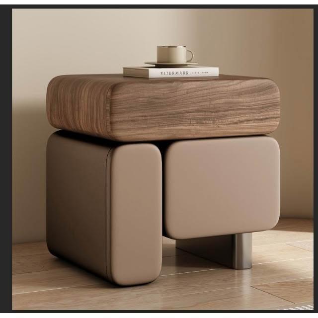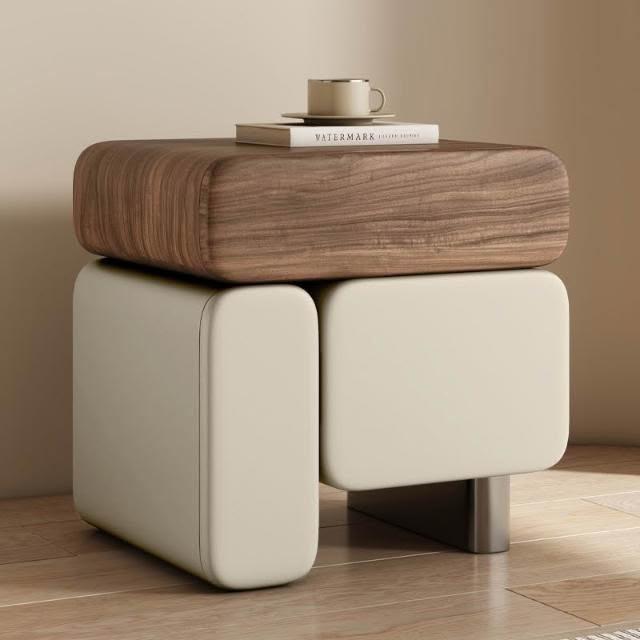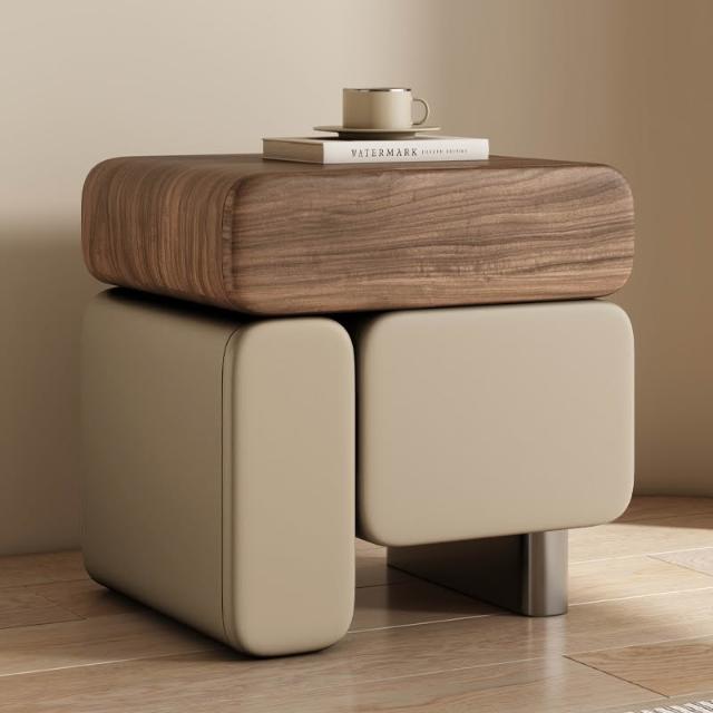 實木床頭櫃 奶油風床頭櫃 皮藝床頭櫃 2025新款床頭柜 意式極簡置物櫃 中古臥室收納櫃 高級感多功能床邊盒