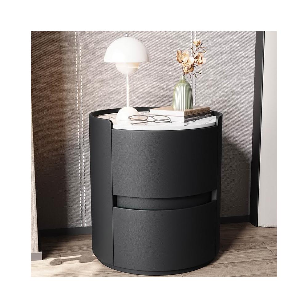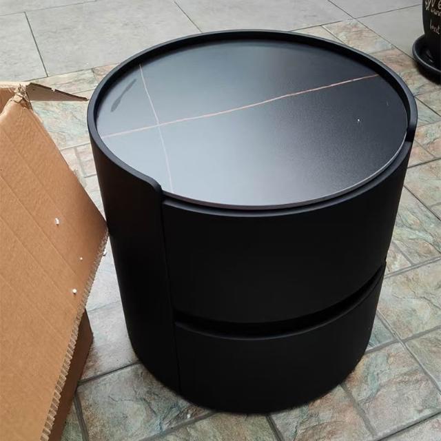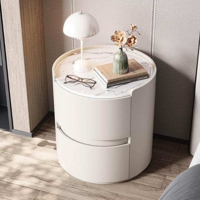 日式床頭櫃 儲物櫃 實木床頭櫃 設計感床邊櫃 奶油風床頭櫃 極簡岩板圓形床頭櫃納帕皮臥室收納櫃實木整裝儲物櫃