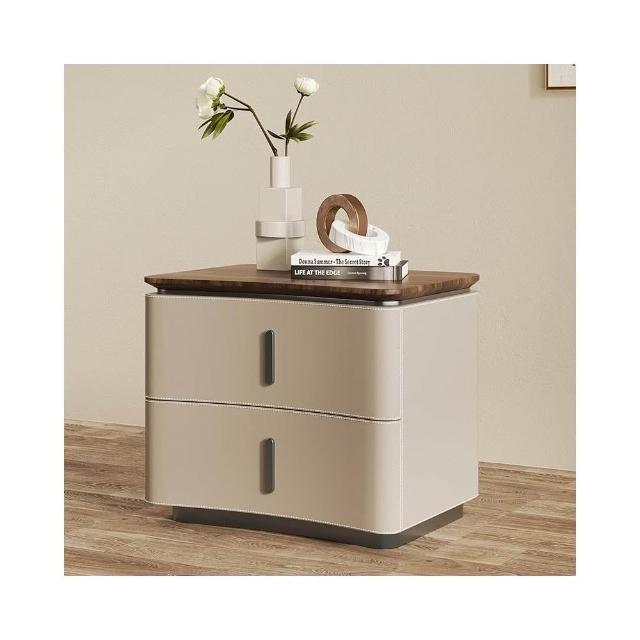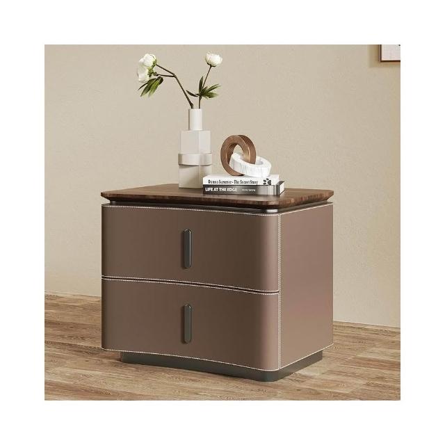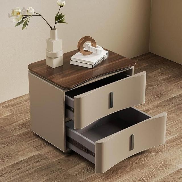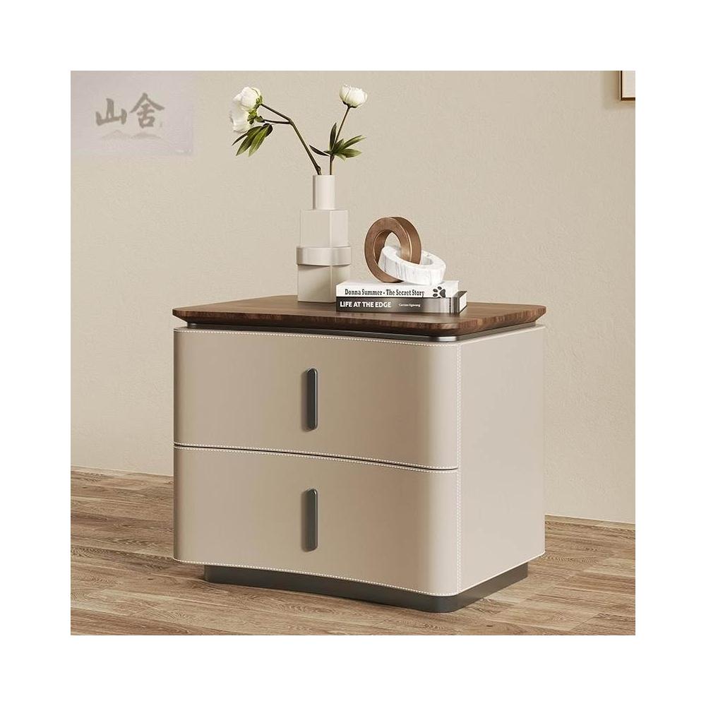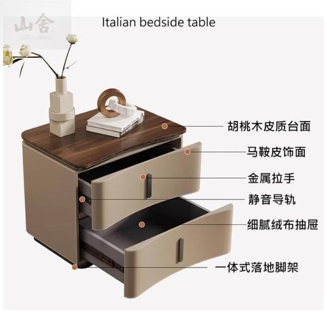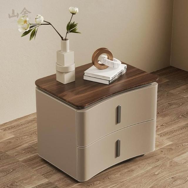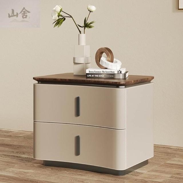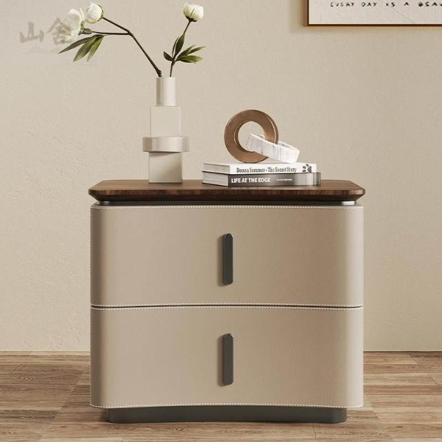 床頭櫃 床邊櫃 收納櫃 抽屜櫃 现代极简轻奢风床头柜 实木马鞍皮床頭櫃 设计师款意式高端卧室收纳柜
