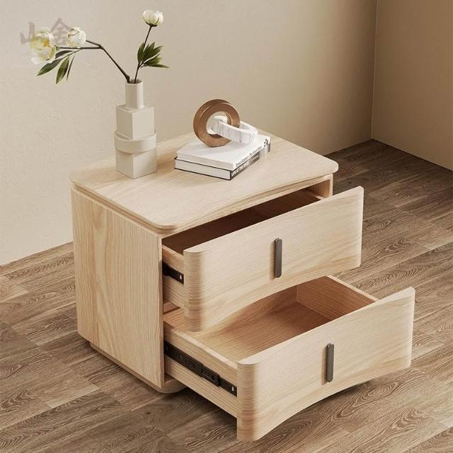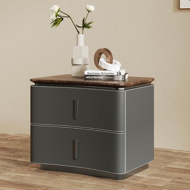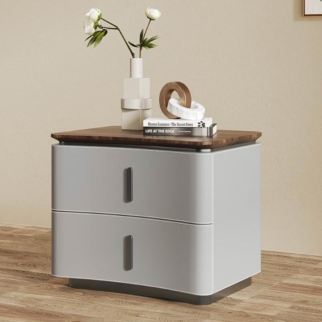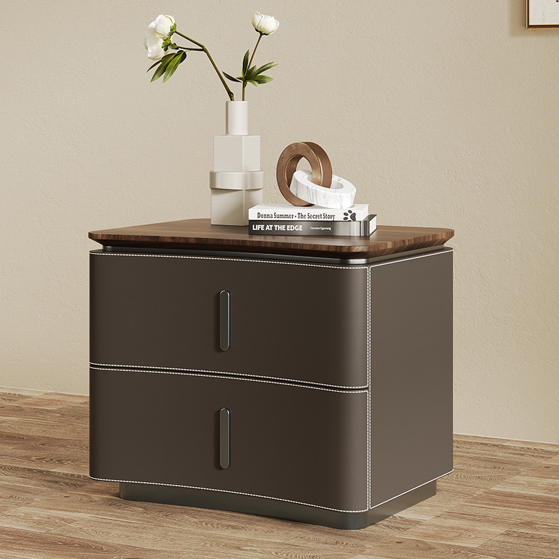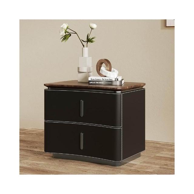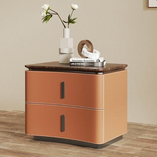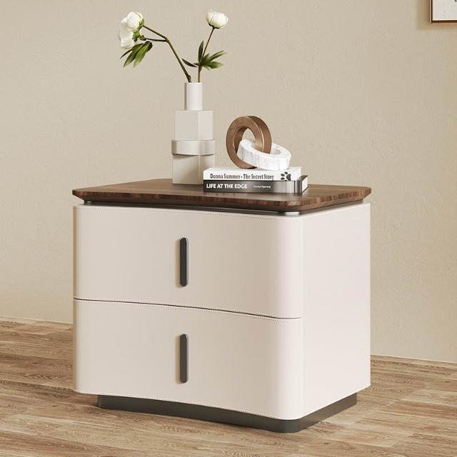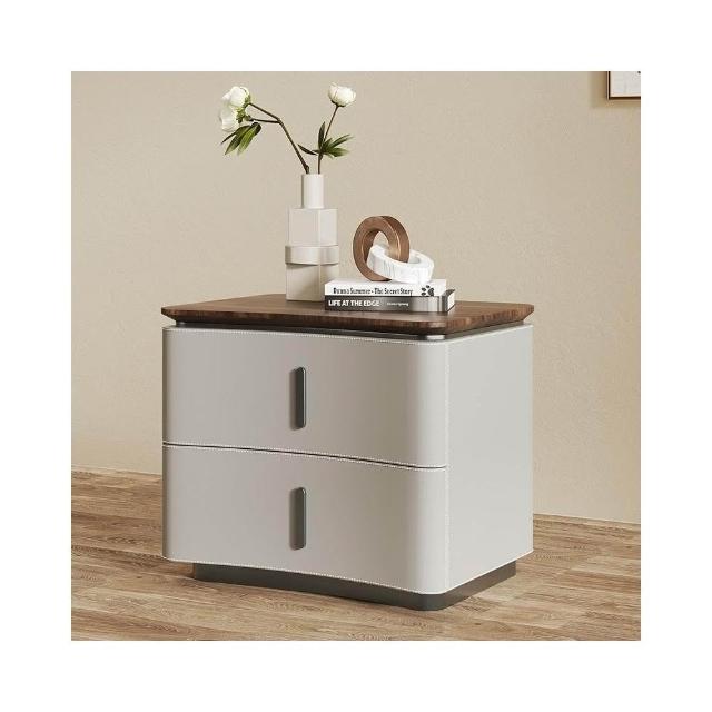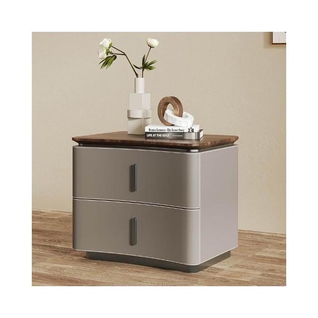 床頭櫃 床邊櫃 收納櫃 抽屜櫃 现代极简轻奢风床头柜 实木马鞍皮床頭櫃 设计师款意式高端卧室收纳柜