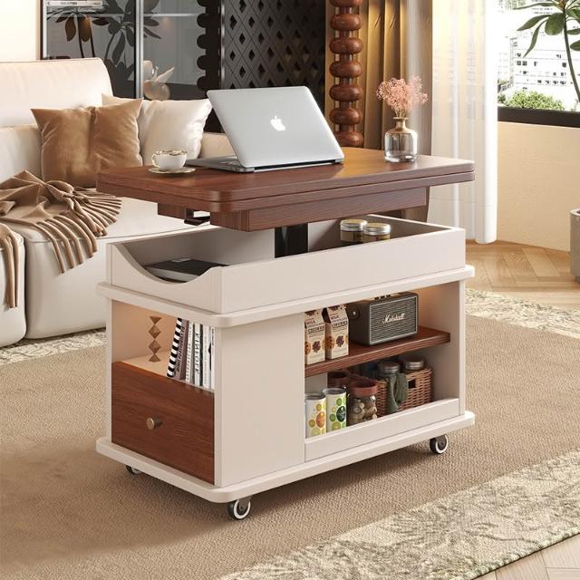 可折叠茶几 升降邊櫃 移动边几小推车2025新款实木小户型客厅沙发
