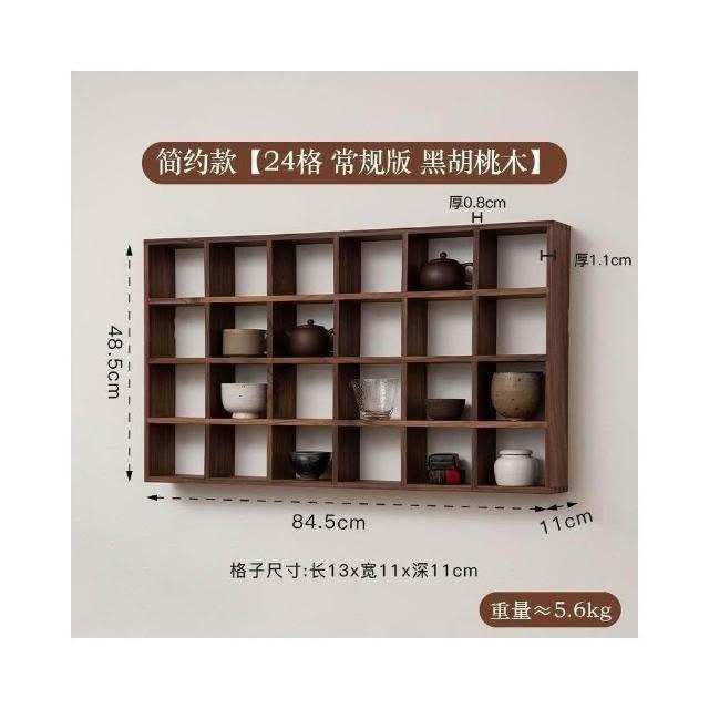 博古架 展示架 黑衚桃木中式多寶閣架子茶室掛墻墻上擺件實木博古架九宮格置物架