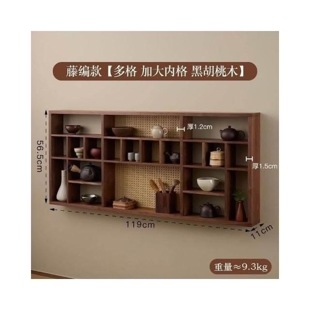 博古架 展示架 黑衚桃木中式多寶閣架子茶室掛墻墻上擺件實木博古架九宮格置物架