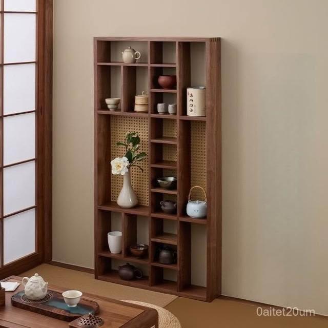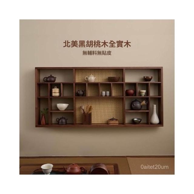 博古架 展示架 黑衚桃木中式多寶閣架子茶室掛墻墻上擺件實木博古架九宮格置物架