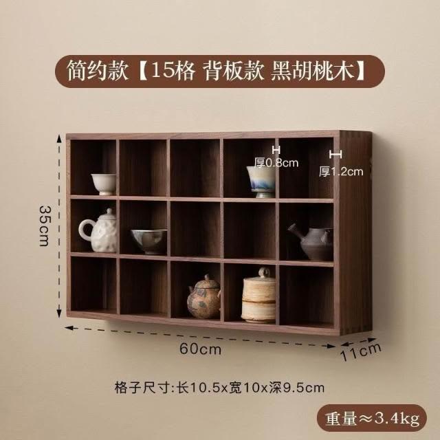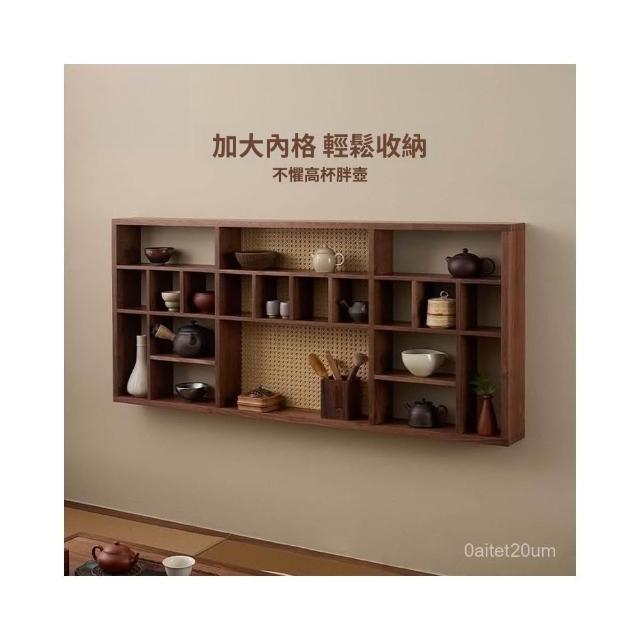 博古架 展示架 黑衚桃木中式多寶閣架子茶室掛墻墻上擺件實木博古架九宮格置物架