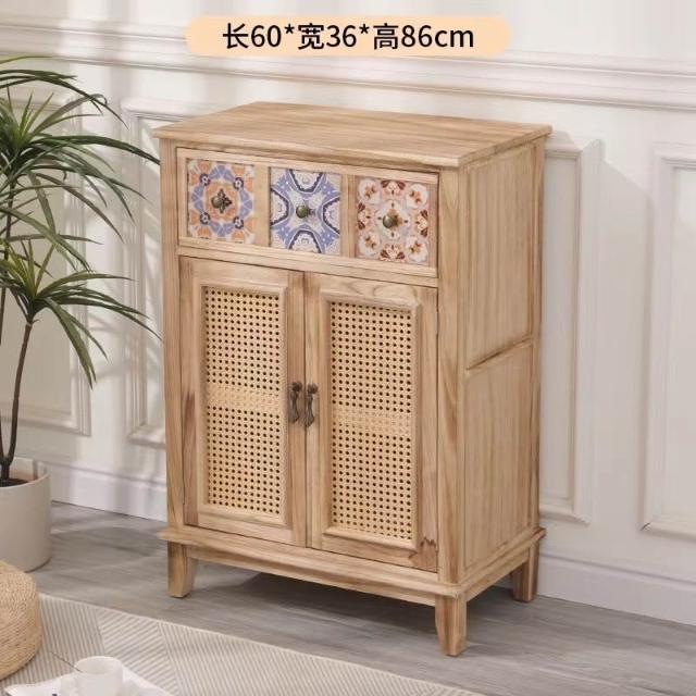藤編柜 實木柜 儲物柜 實木收納儲物櫃復古餐邊櫃玄關茶水櫃藤編斗柜子客廳邊櫃美式陽台