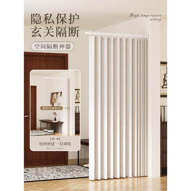 隱形門簾 隔斷 摺疊門 入戶玄關屏風軟隔斷簾免打孔門簾半簾遮擋簾子客廳家用掛簾折疊簾