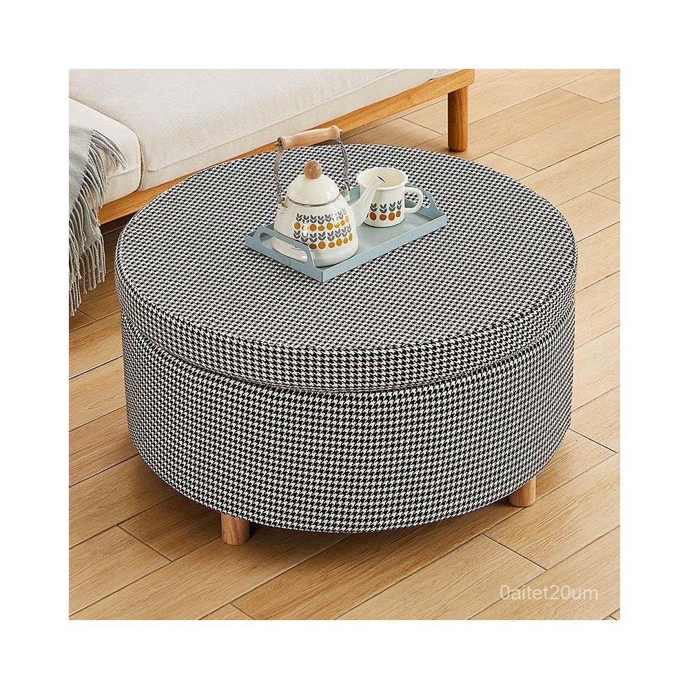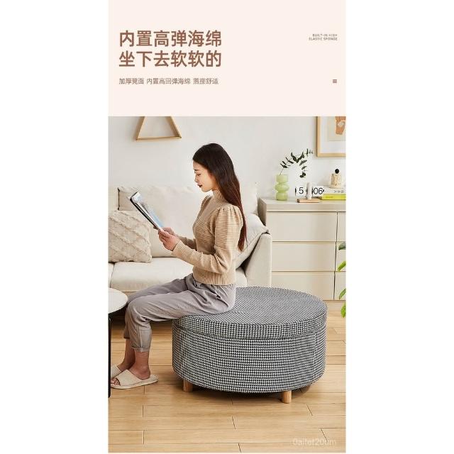 儲物沙發凳 長條凳 北歐韆鳥格沙髮腳踏凳可拆洗圓形坐墩客廳服裝鞋店凳收納儲物凳子