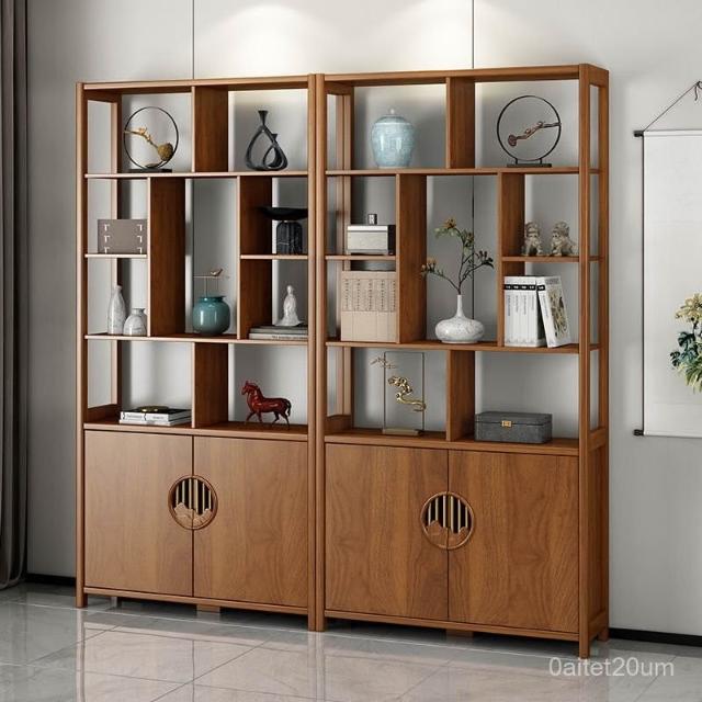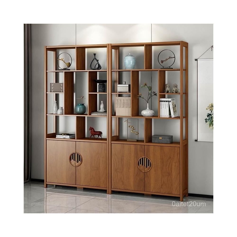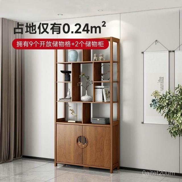 博古架 展示架 新中式博古架現代簡約多寶閣客廳置物架隔斷屏風實木槓茶葉展示櫃