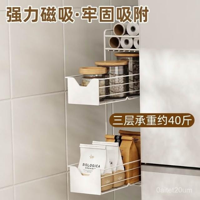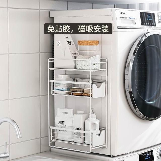 洗衣機置物架 冰箱置物架 收納架 多功能洗衣機側麵收納架抽拉式冰箱保鮮膜磁吸置物架