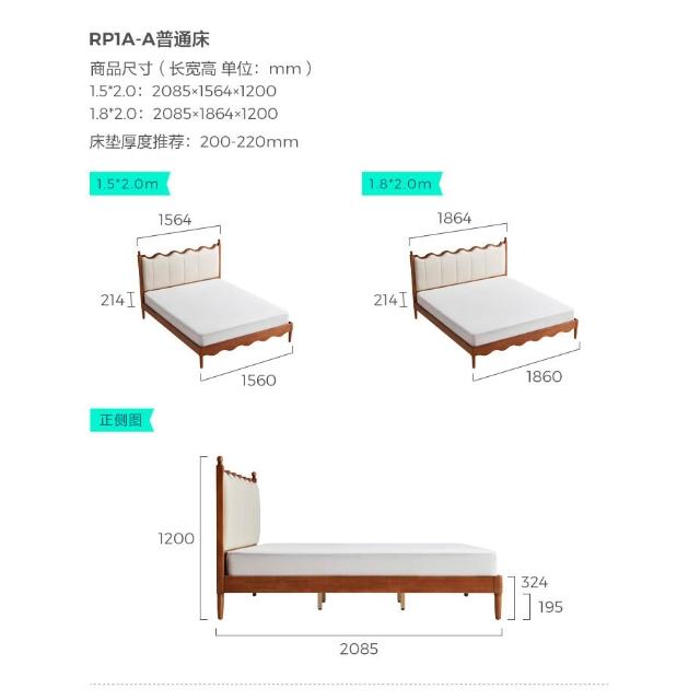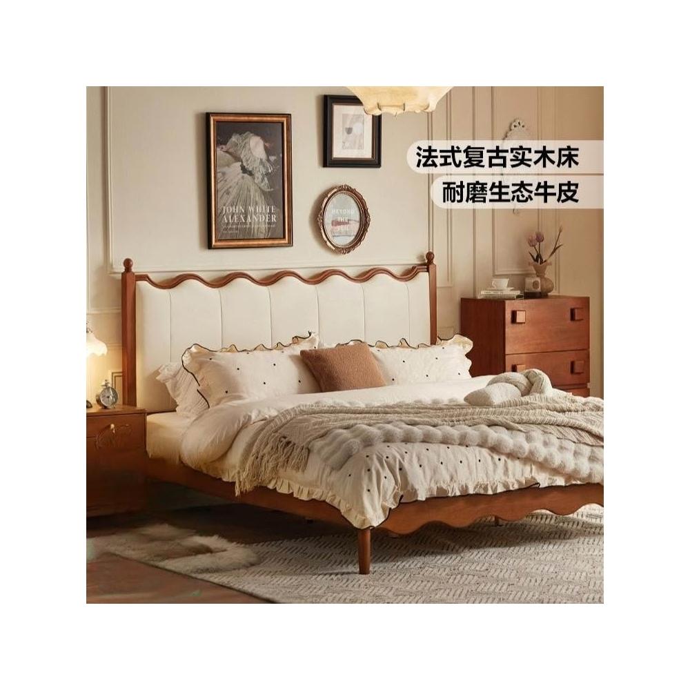 林氏家居法式復古實木床臥室1米8雙人床架主臥大床漣漪床家具木業