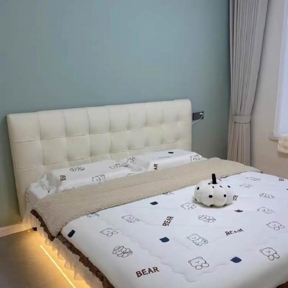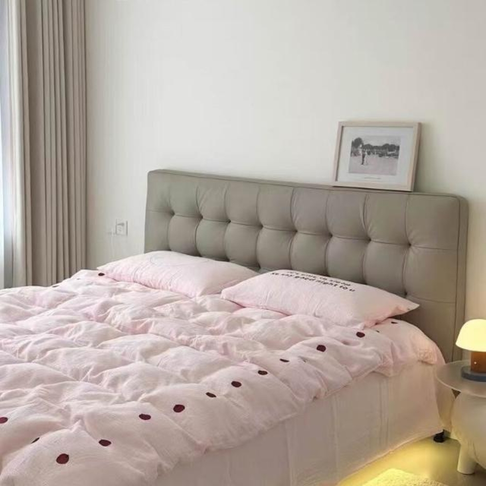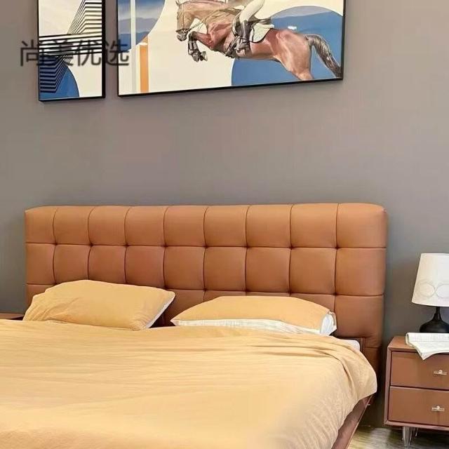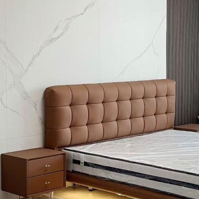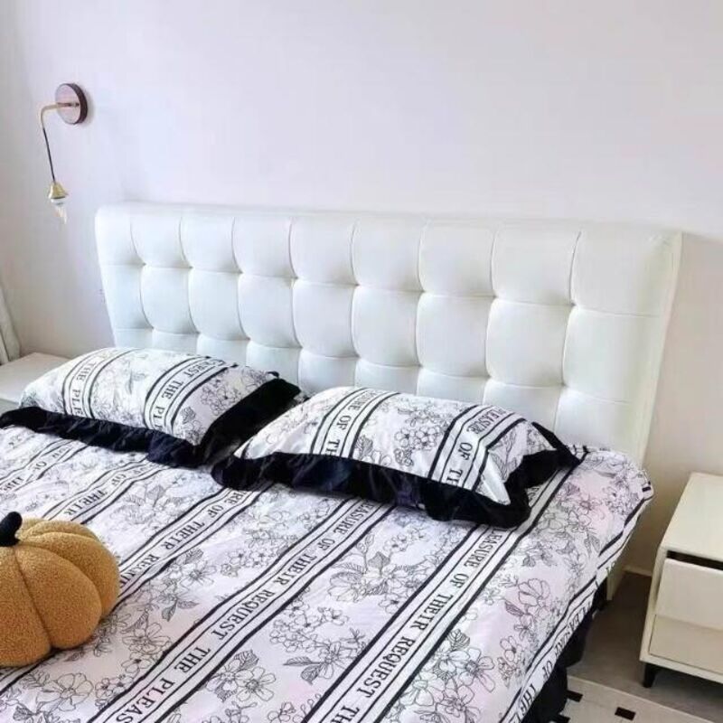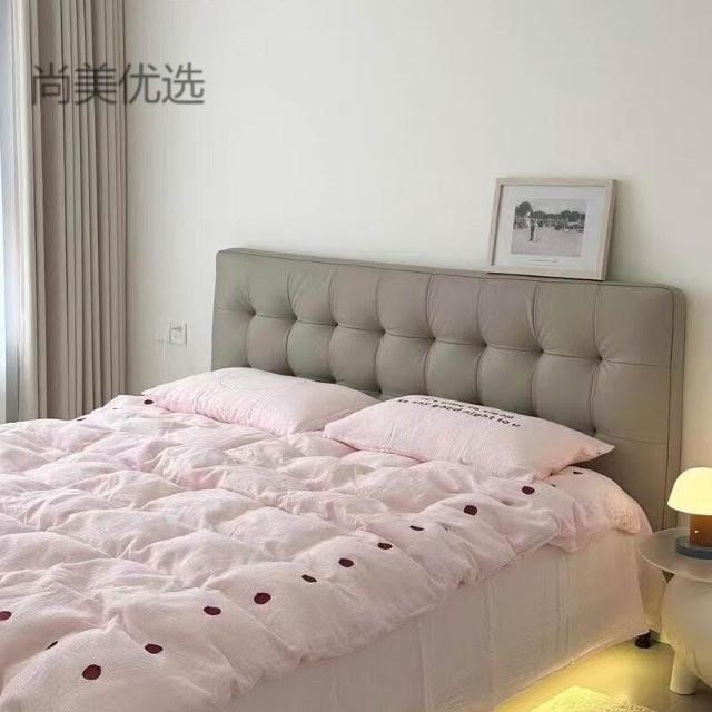 免運 床頭板 軟包床頭板 靠背板 法式極簡床頭板軟包主臥床頭靠背 黑色華夫格床頭落地實木真皮單買