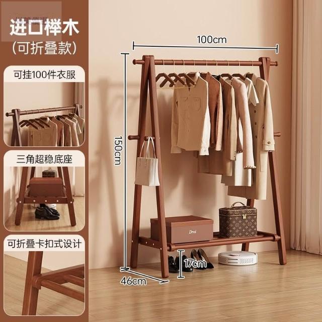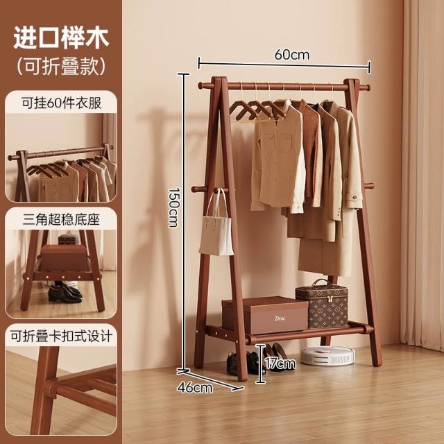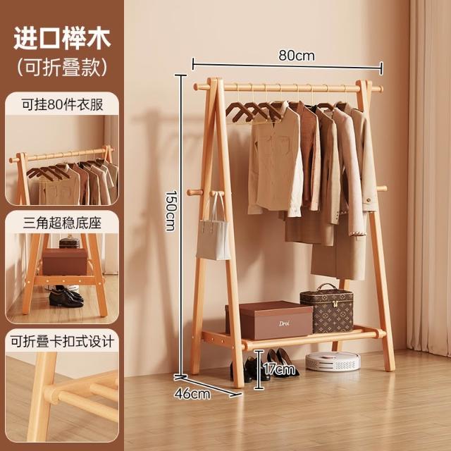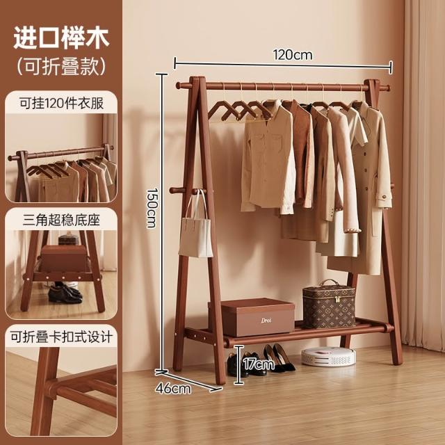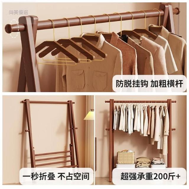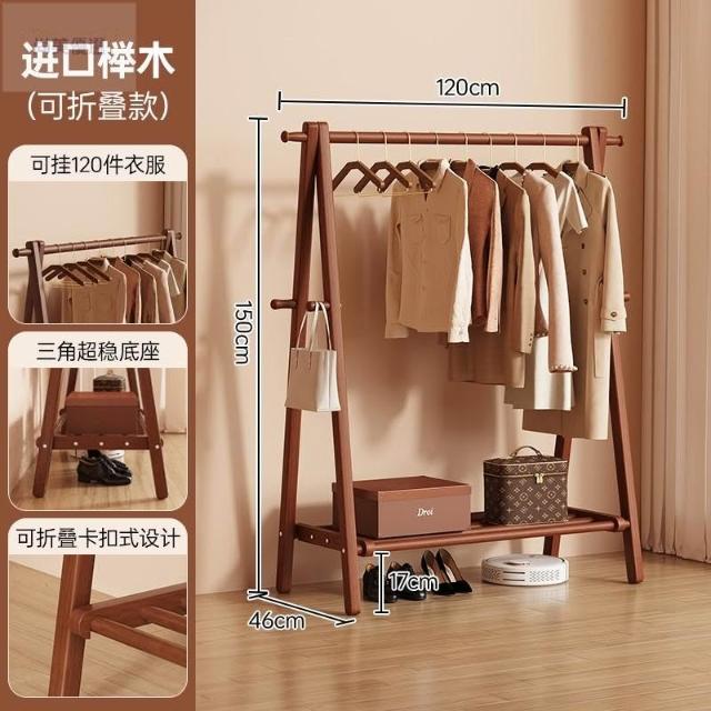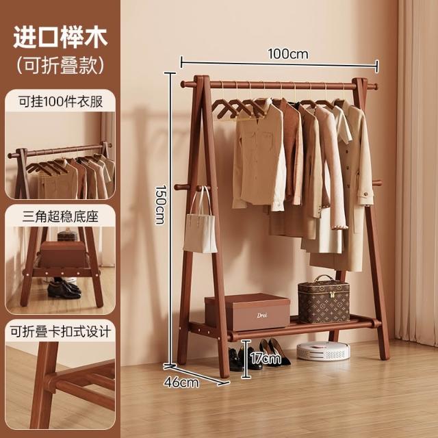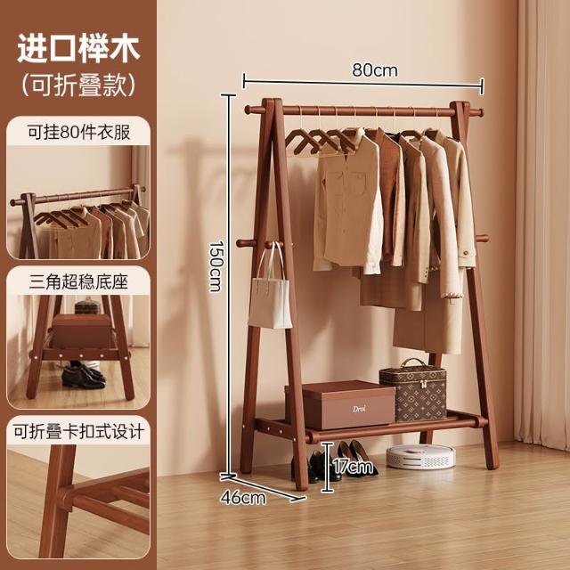 免運 掛衣架 衣帽架 收納衣架 实木挂衣架落地卧室家用衣帽架房间榉木室内简易立式可折叠晾衣架