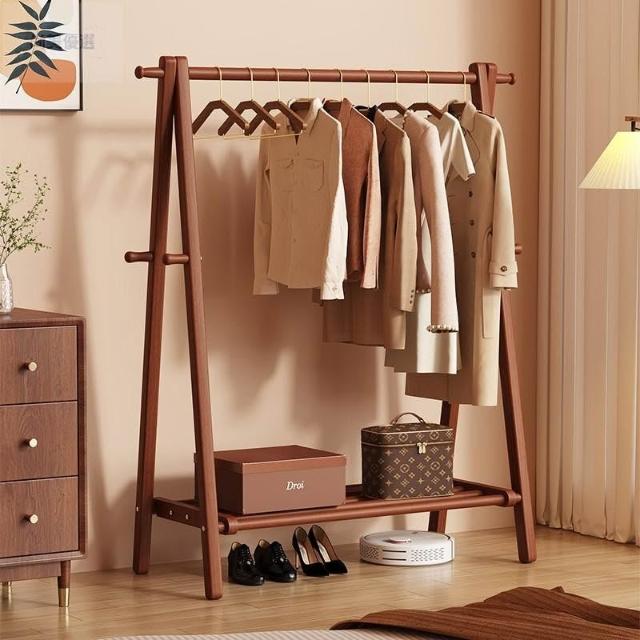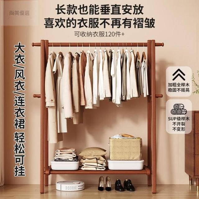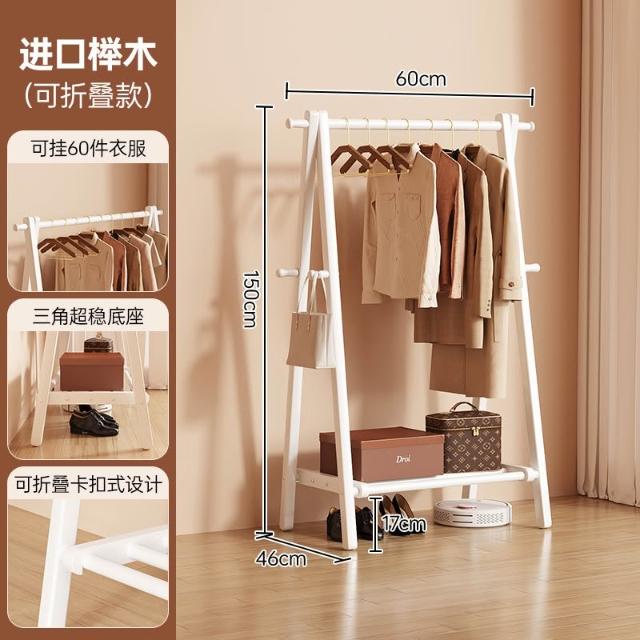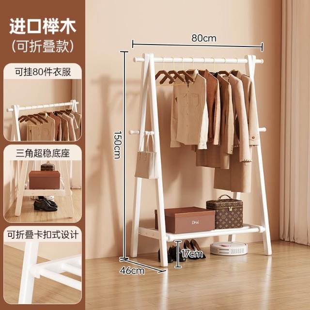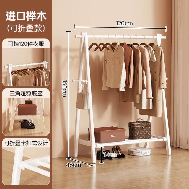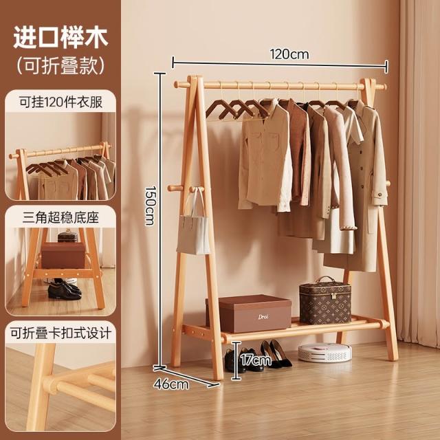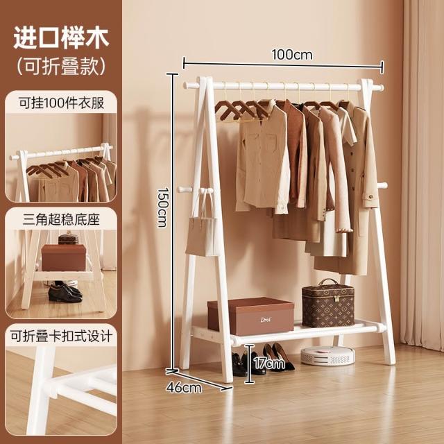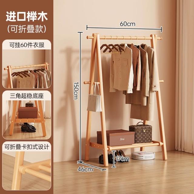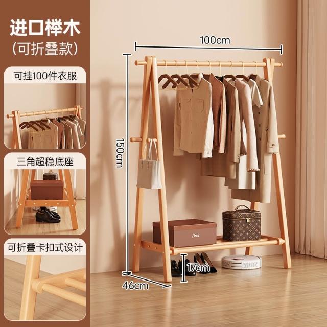 免運 掛衣架 衣帽架 收納衣架 实木挂衣架落地卧室家用衣帽架房间榉木室内简易立式可折叠晾衣架