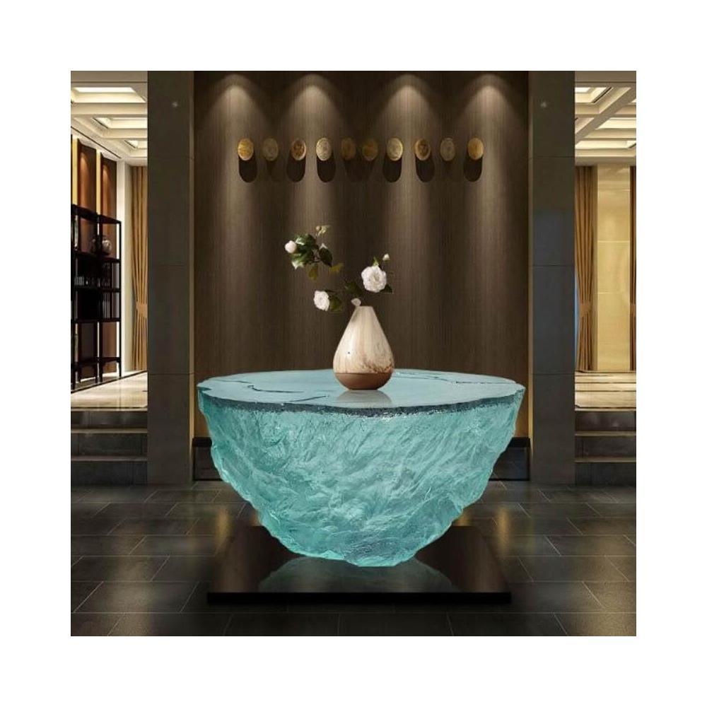 透明桌子 設計感桌子 環氧樹脂桌子 客廳酒店高級感設計師款透明環氧樹脂茶几水滴樹葉椅落地圓形桌子
