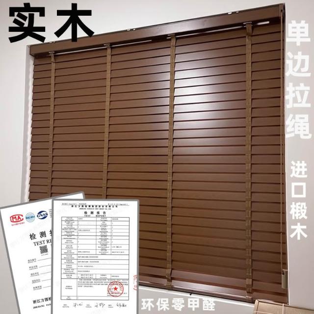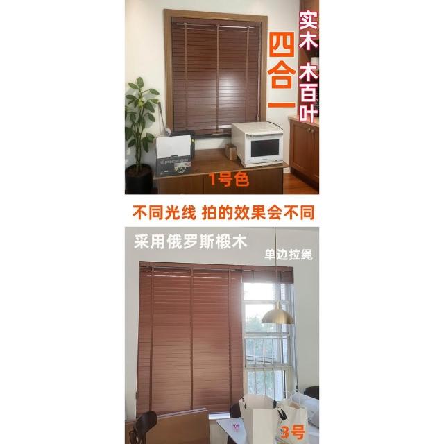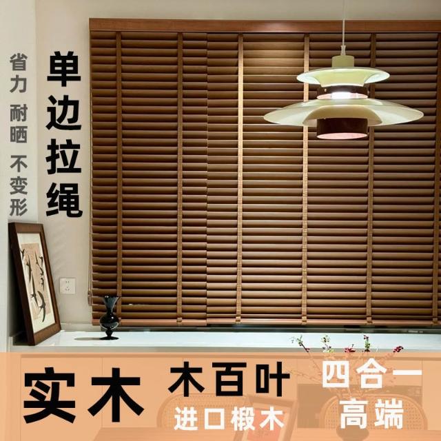 百葉窗 窗簾 捲簾 木百葉窗簾實木椴木四合一拉繩中古風木簾木質隔斷升降遮光胡桃木