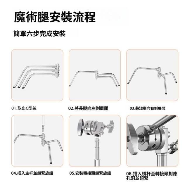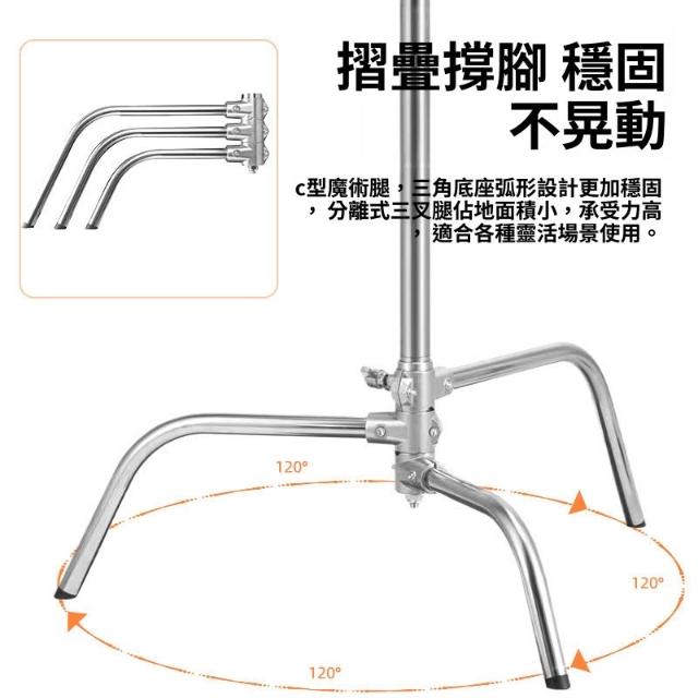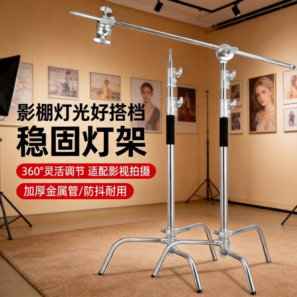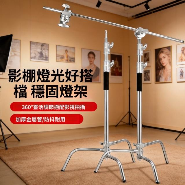 直播攝影不銹鋼支架便攜伸縮橫桿拍照頂燈斜臂3.3米C型魔術腿燈架