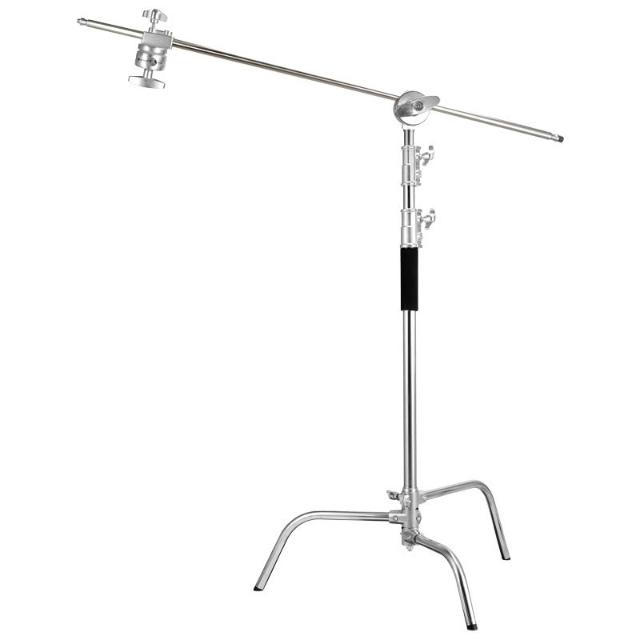 直播攝影不銹鋼支架便攜伸縮橫桿拍照頂燈斜臂3.3米C型魔術腿燈架