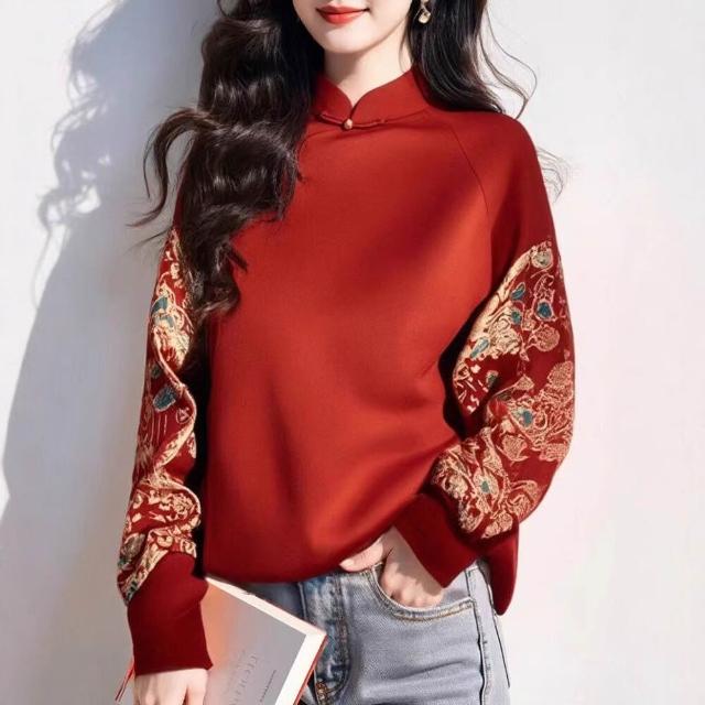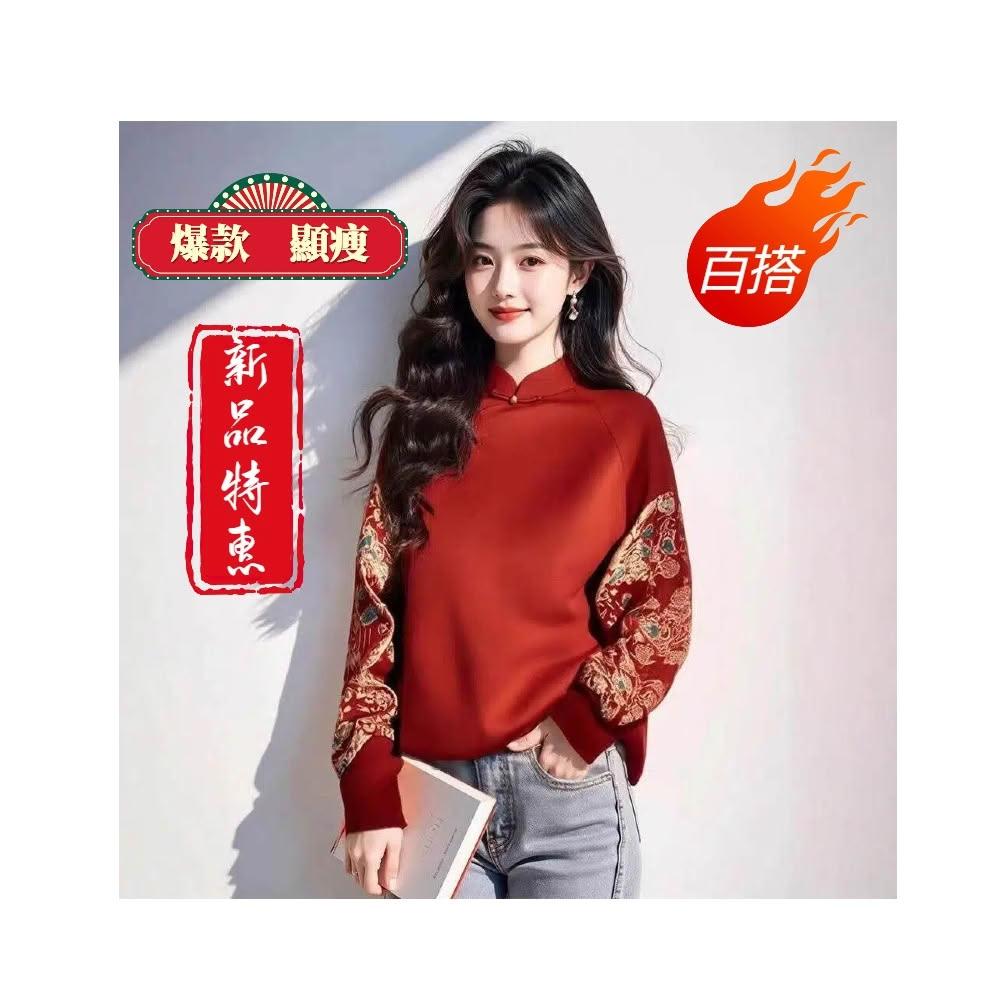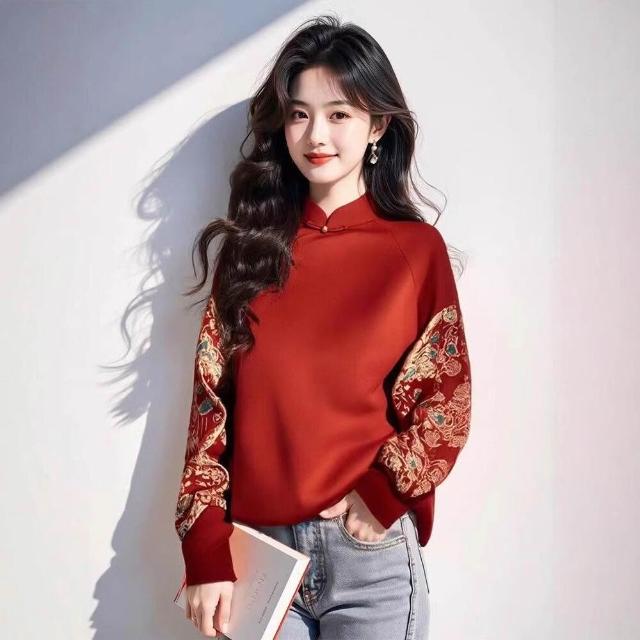 漫語 女裝 衛衣 長袖 盤扣 T恤 內搭 外套感 打底上衣 2026新款 紅色戰袍