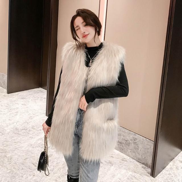漫語 實拍皮草2024新款狐貍毛編織仿皮草 馬甲 女貉子毛毛 外套 年輕款 背心