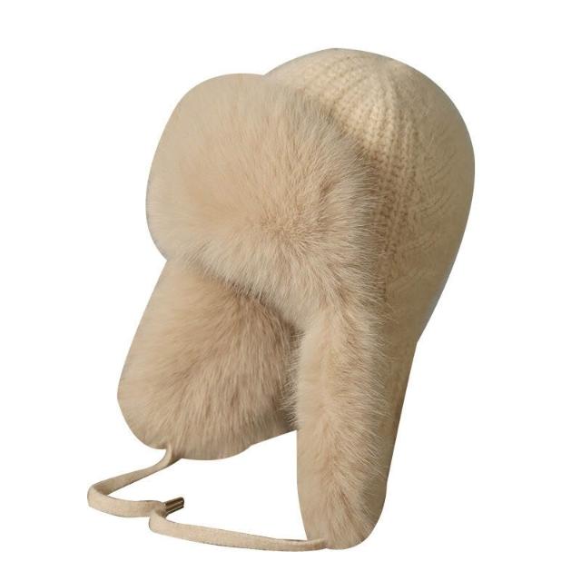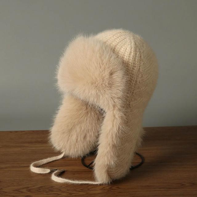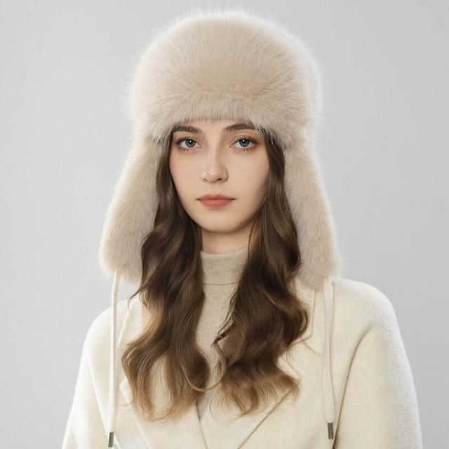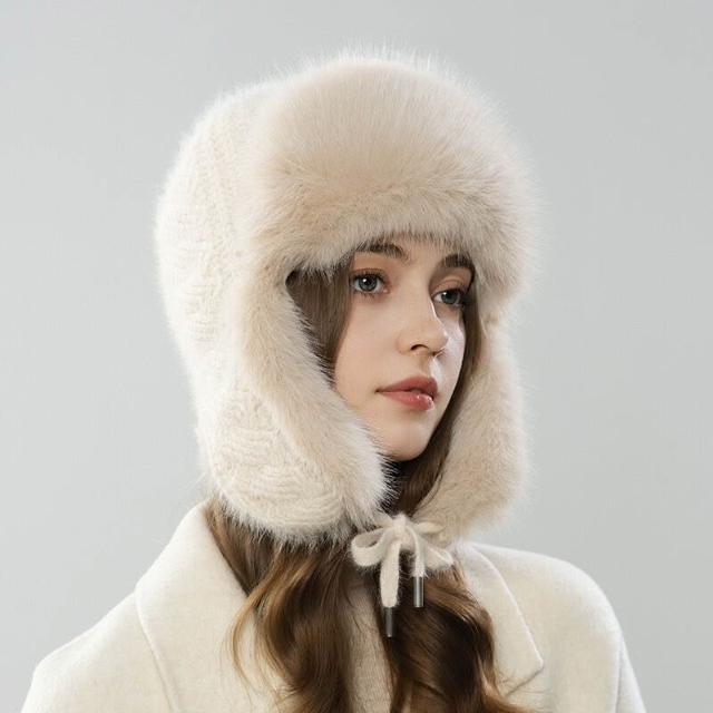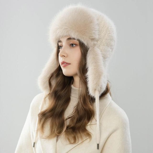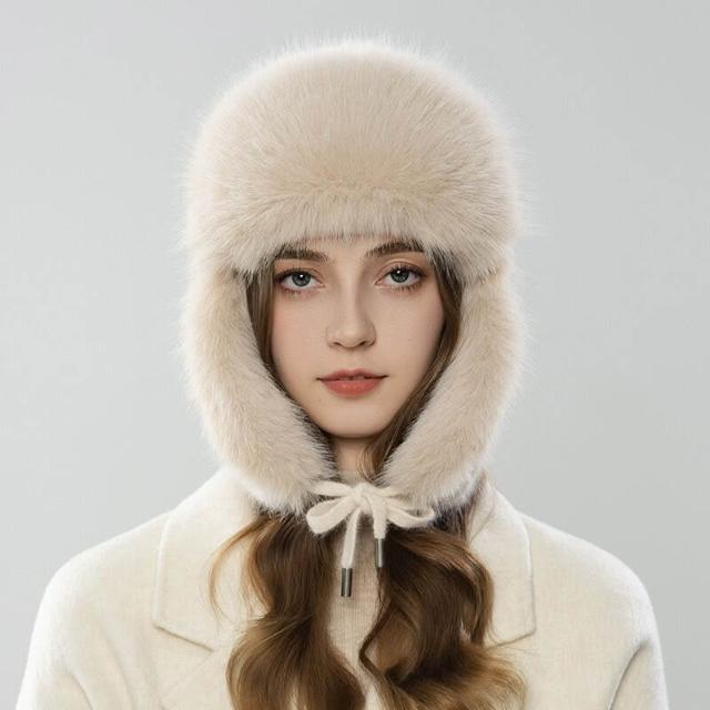 漫語· 加絨防寒帽子秋冬季女士加厚保暖時尚護耳帽子套頭帽女毛絨雷鋒帽