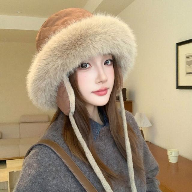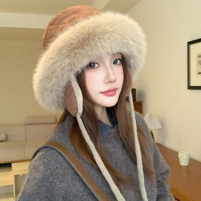 漫語 毛絨護耳帽子女秋冬季時尚保暖漁夫帽加厚保暖騎車防風防寒雷鋒帽