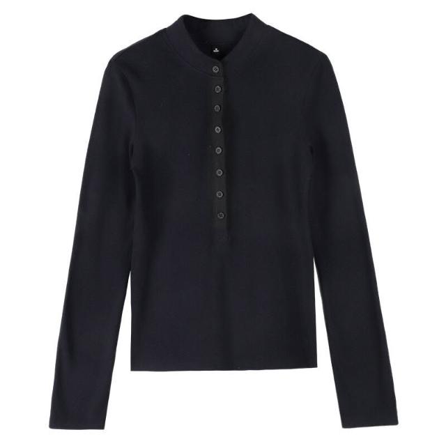漫語 2025秋季新款亨利衫長袖t恤女正肩紐扣打底衫內搭修身針織衫上衣