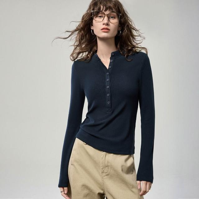 漫語 2025秋季新款亨利衫長袖t恤女正肩紐扣打底衫內搭修身針織衫上衣