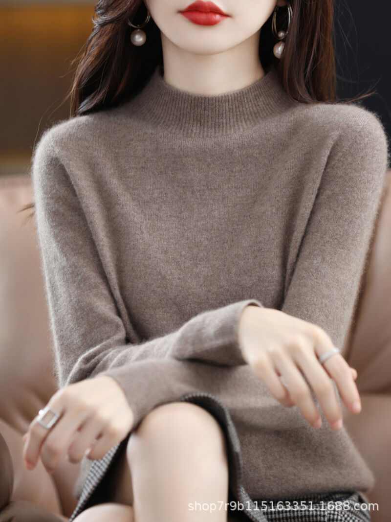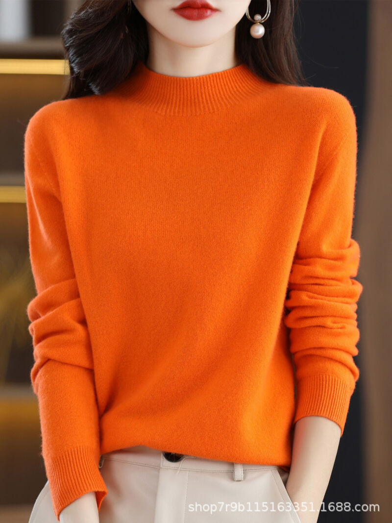 漫語 秋冬新款純羊毛衫女半高領一線成衣羊毛衫針織毛衣寬松顯瘦打底衫