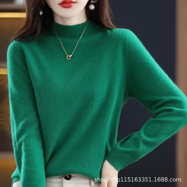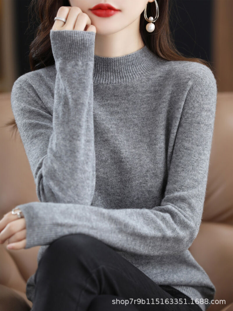漫語 秋冬新款純羊毛衫女半高領一線成衣羊毛衫針織毛衣寬松顯瘦打底衫