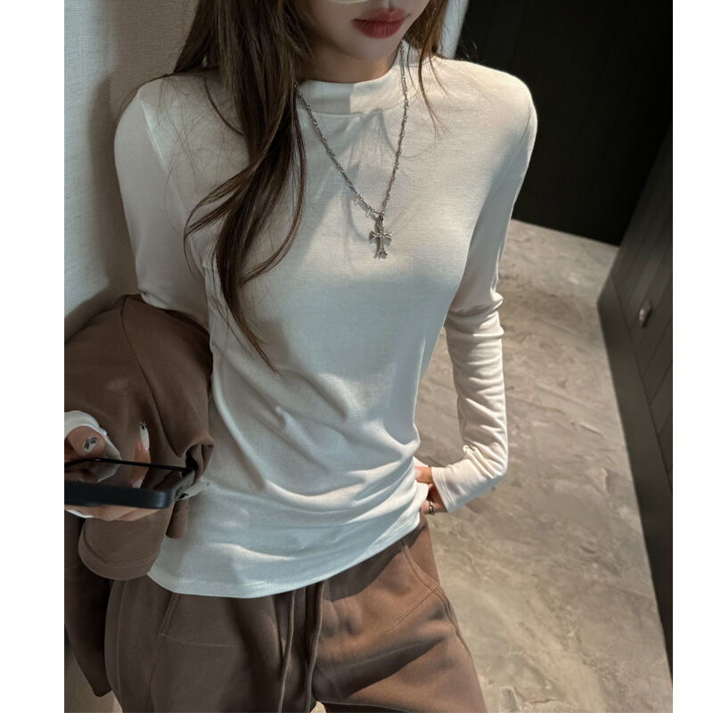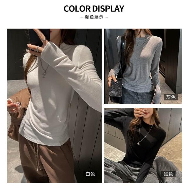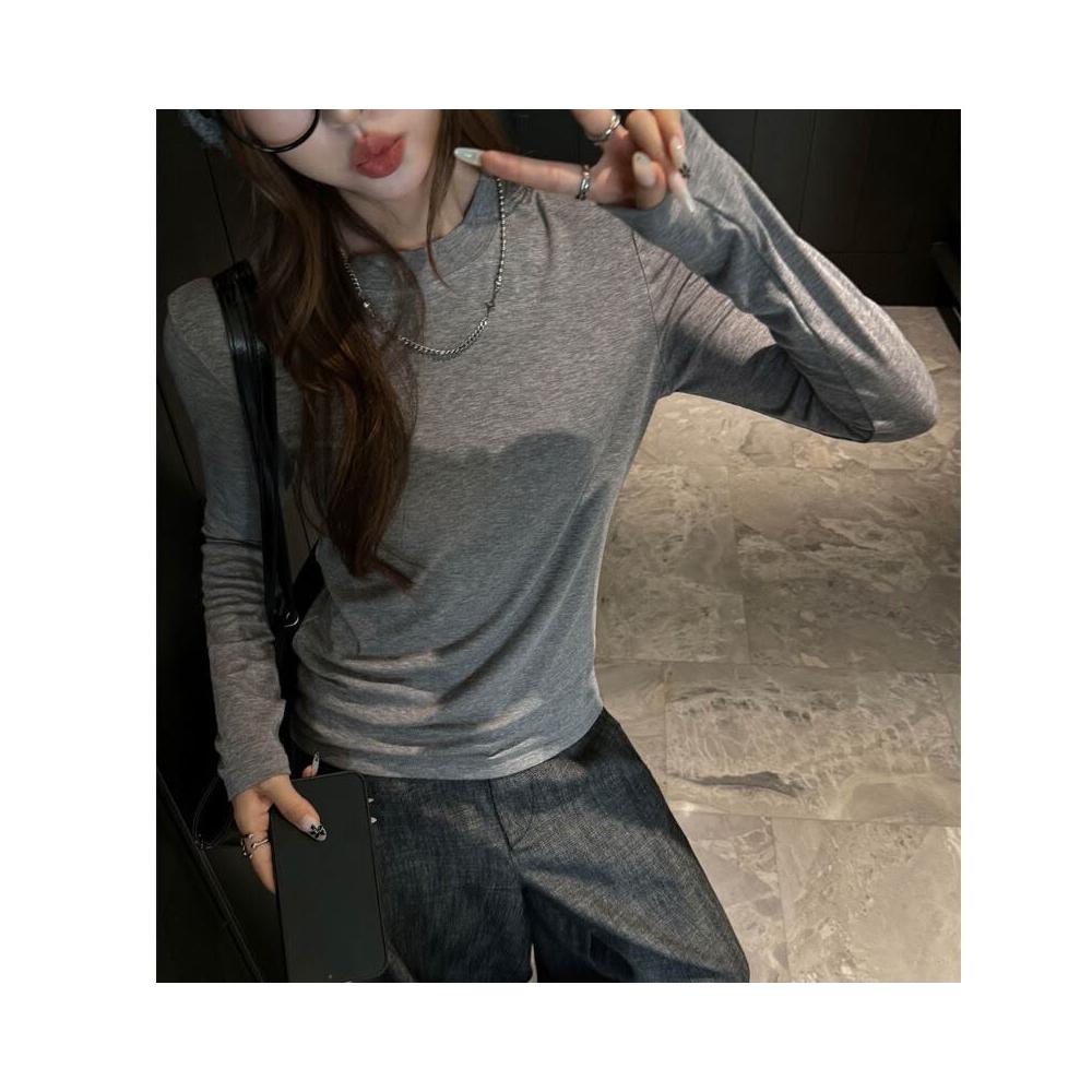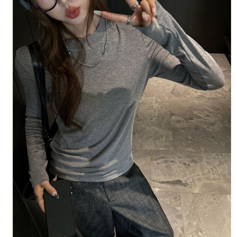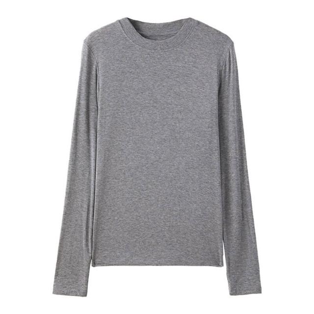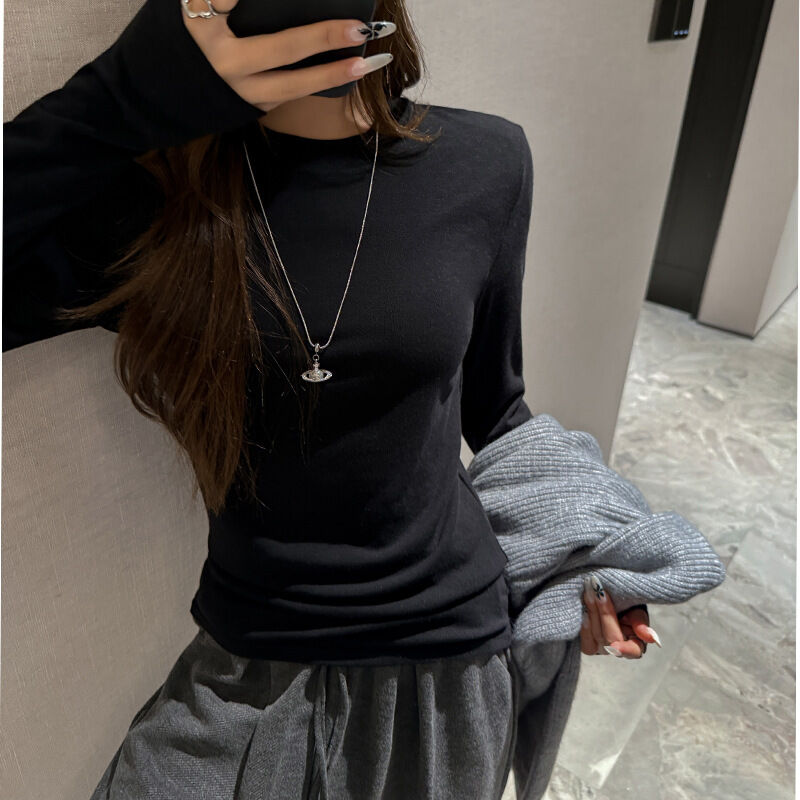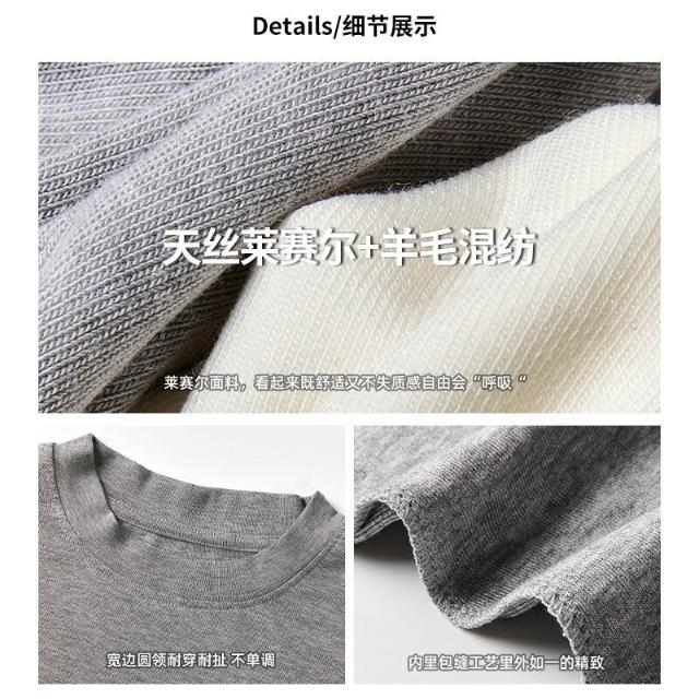 漫語 天絲羊毛早秋小圓領高品質正肩長袖打底衫女內搭簡約修身t恤上衣