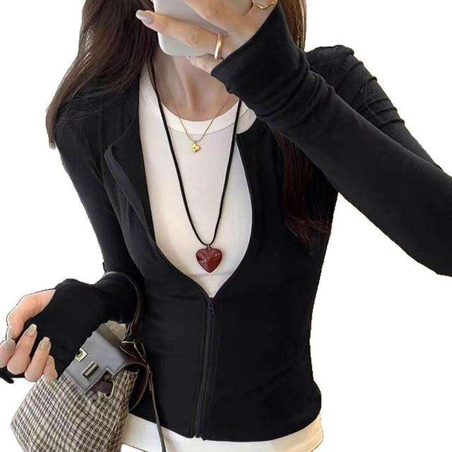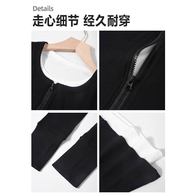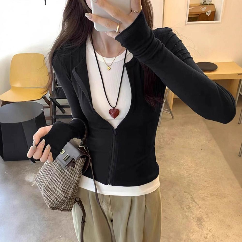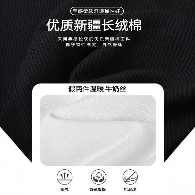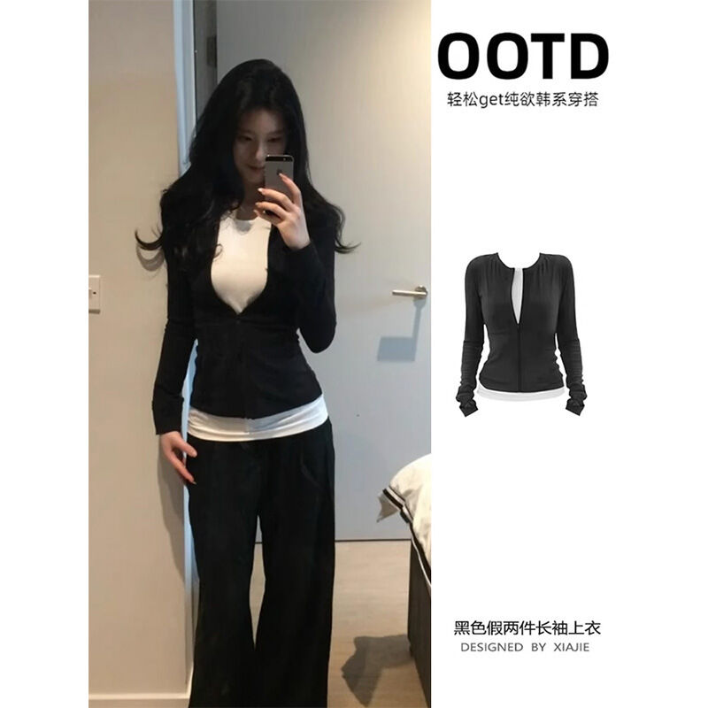 漫語 黑色假兩件上衣女早秋內搭高級小眾不撞衫t恤韓系穿搭修身打底衫
