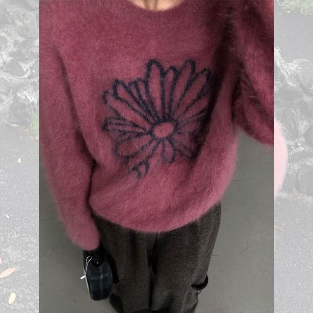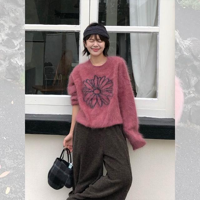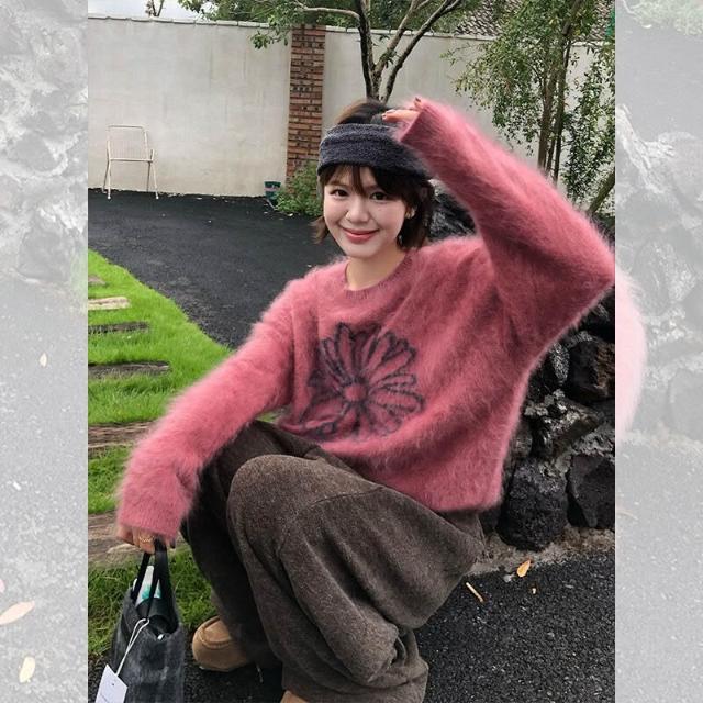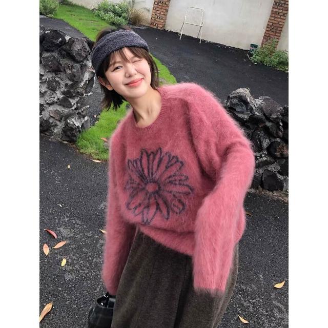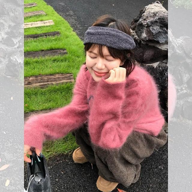 漫語· 樹莓粉色馬海毛套頭毛衣女秋冬外穿慵懶風高級感寬松軟糯針織上衣