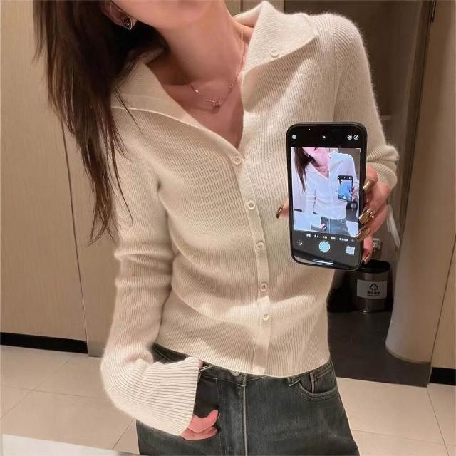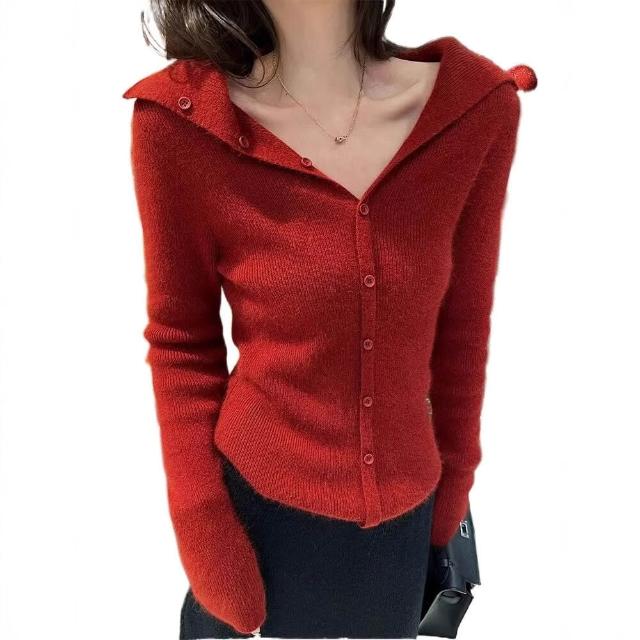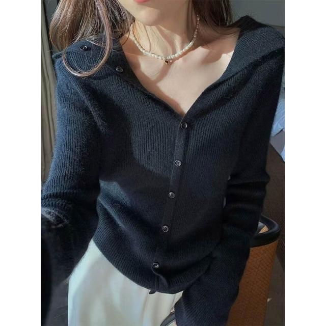 漫語· 100%純羊毛衫女設計感海軍領針織毛衣外套修身顯瘦氣質羊絨打底衫