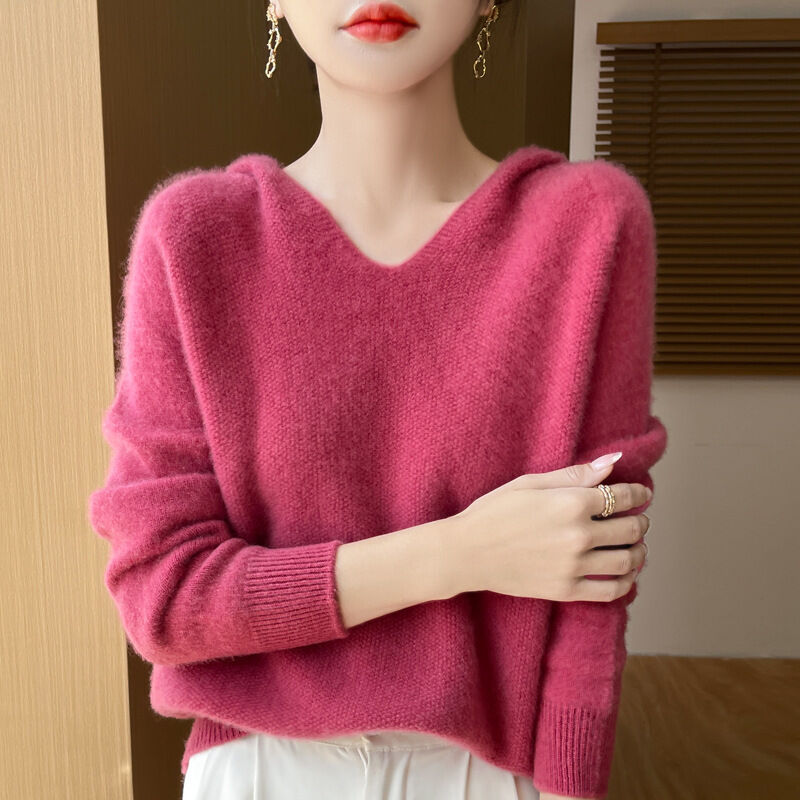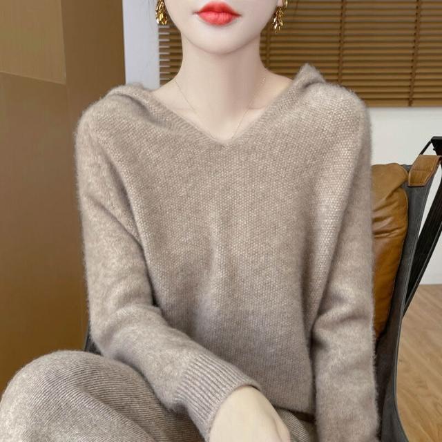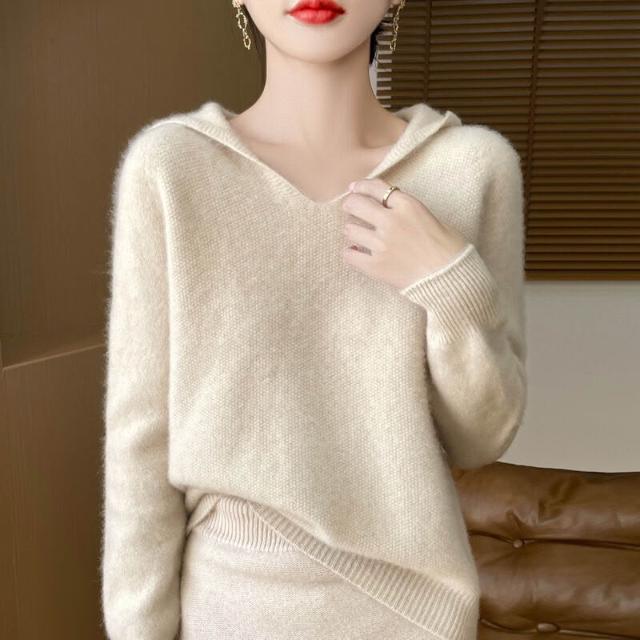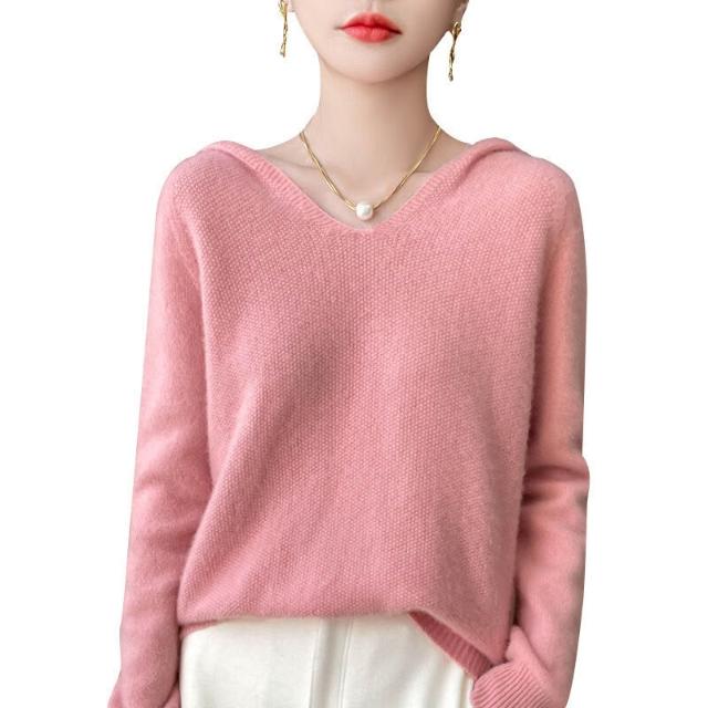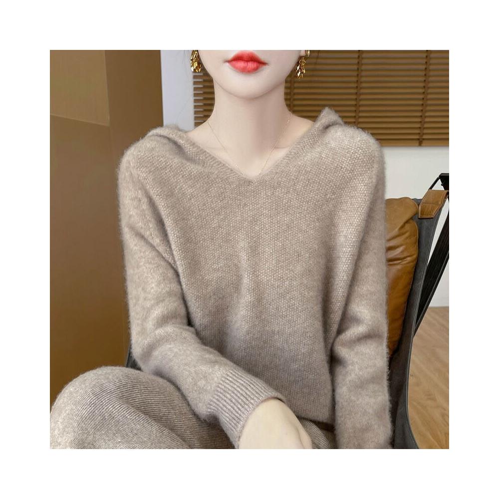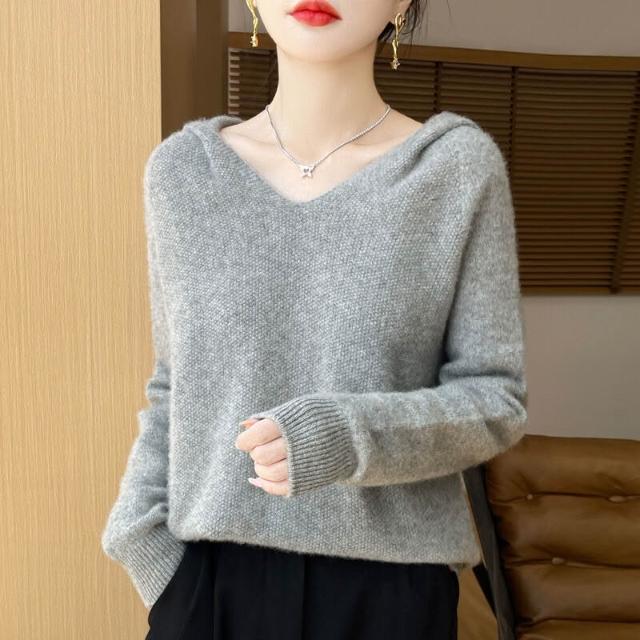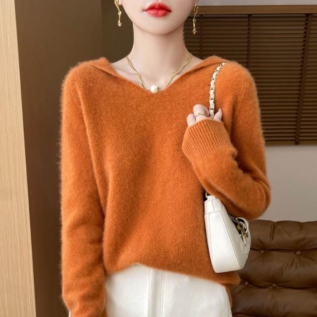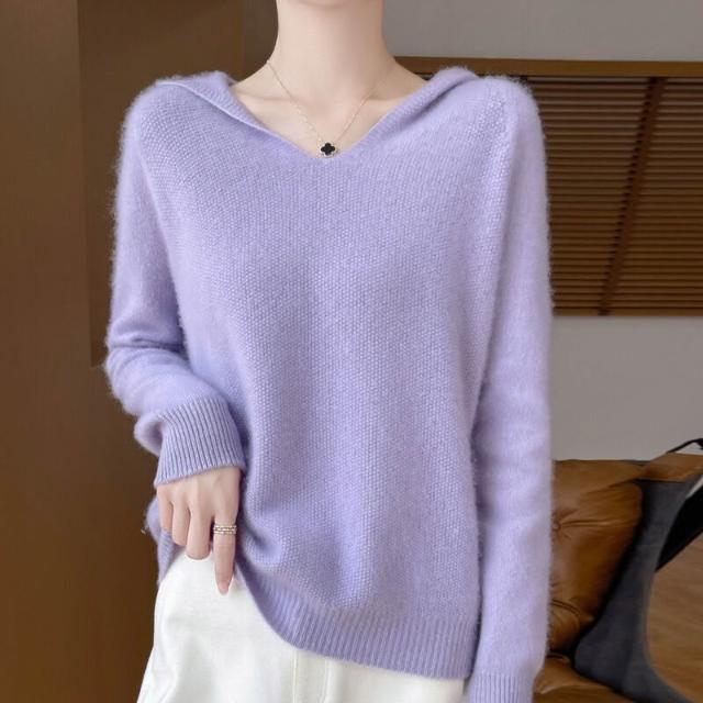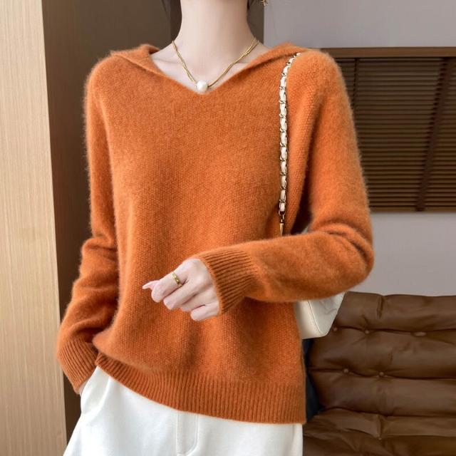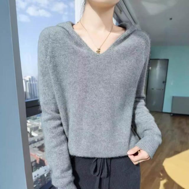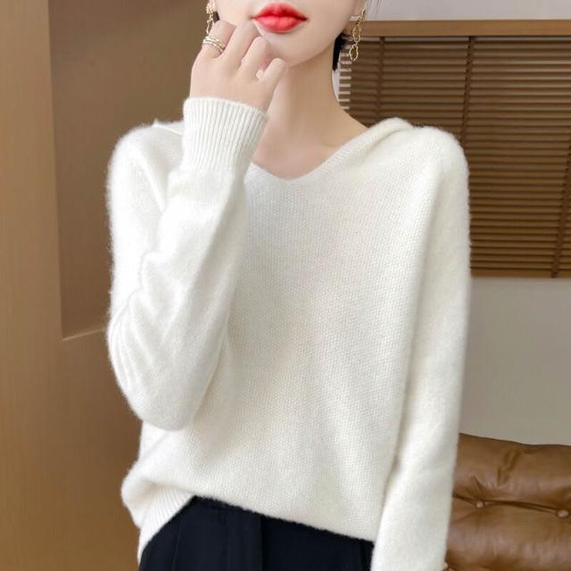 漫語· 24年新款秋冬桂花針羊毛針織連帽衛衣女帽衫長袖純色毛衣上衣外搭