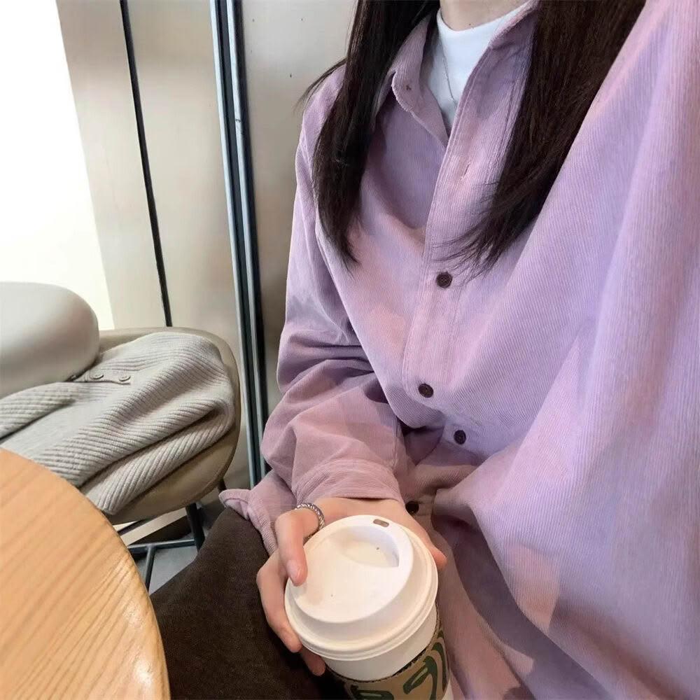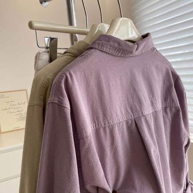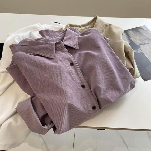 漫語 溫柔芋紫色燈芯絨襯衫女!2025秋季復古百搭顯瘦疊穿休閑襯衣外套