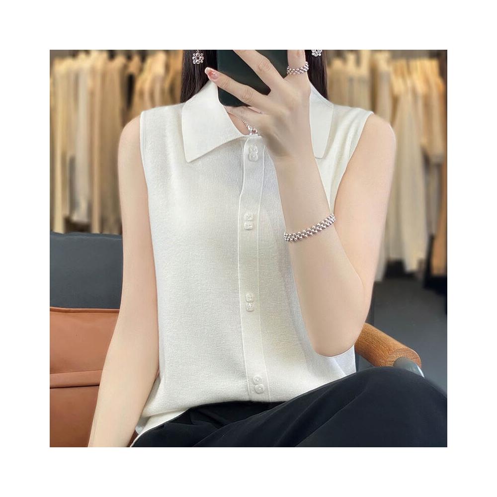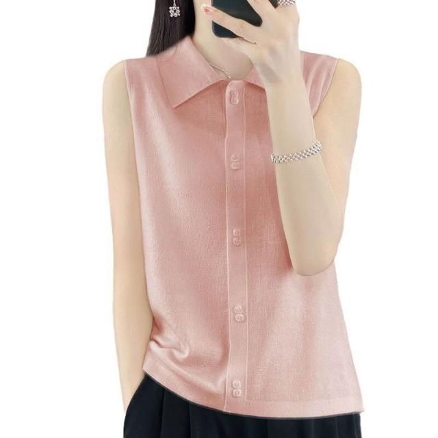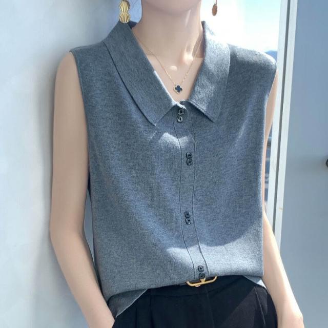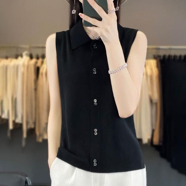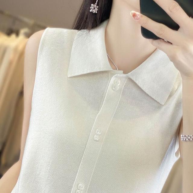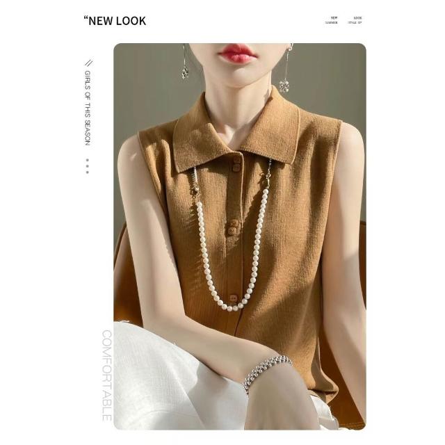 漫語 疊穿馬甲背心女POLO領無袖開衫上衣顯瘦打底衫薄款針織衫秋季新款