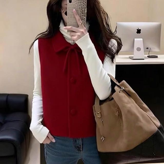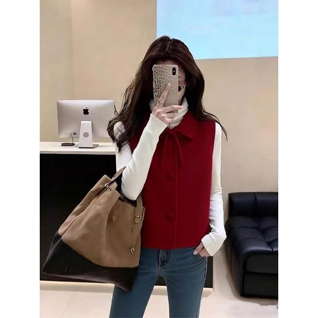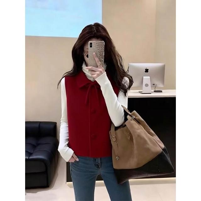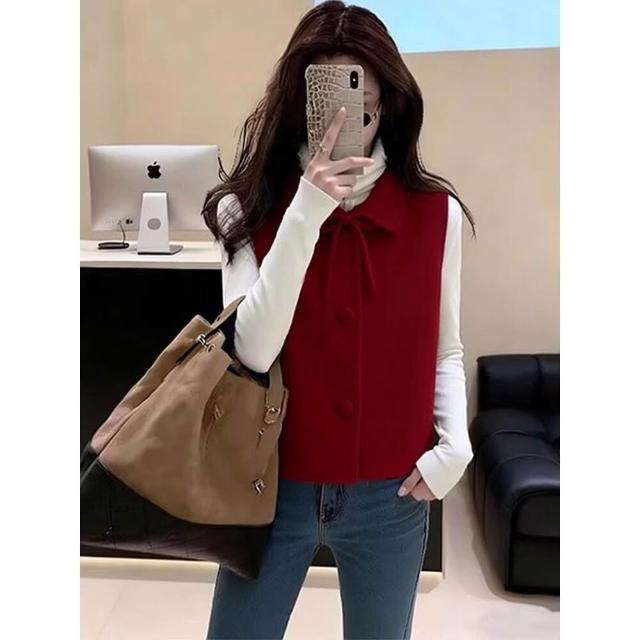 漫語 新年新年穿搭紅色馬甲女秋冬巨好看漂亮加厚疊穿背心上衣均碼