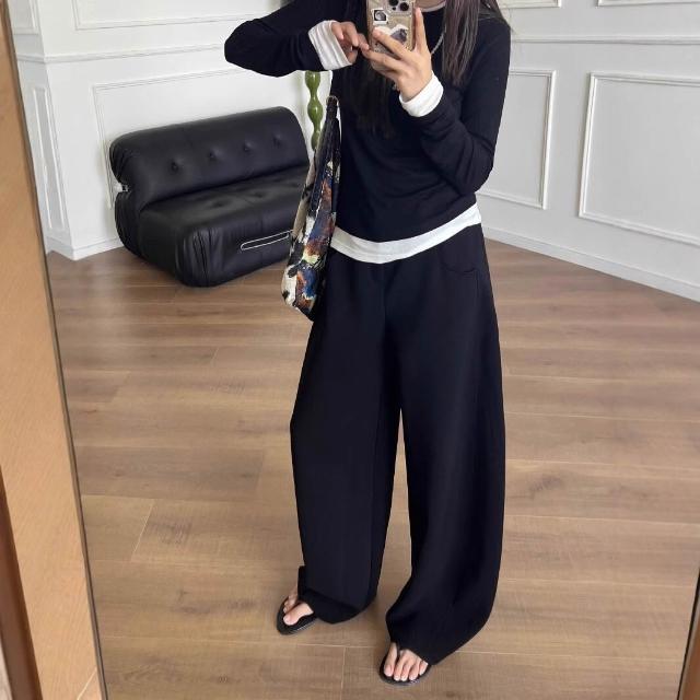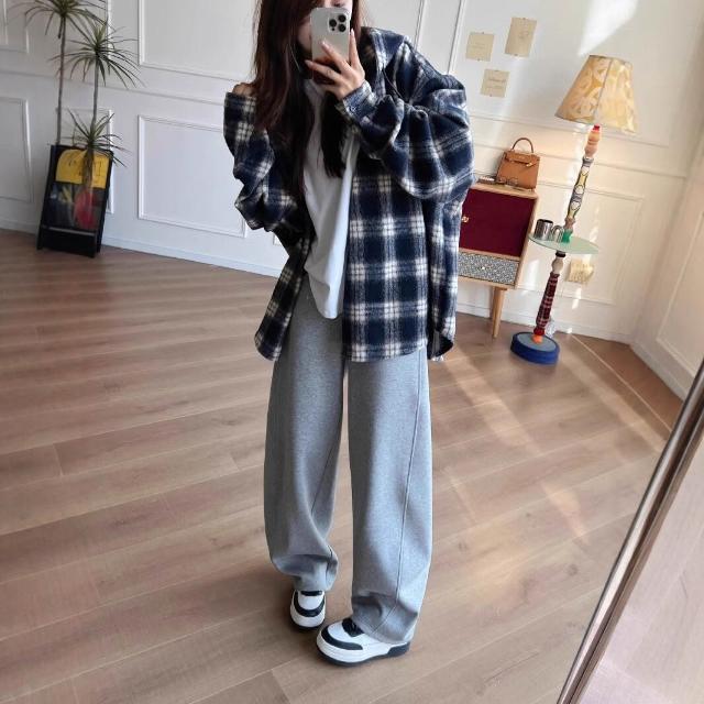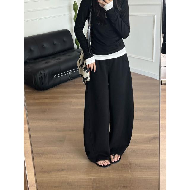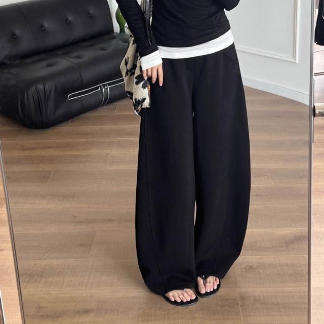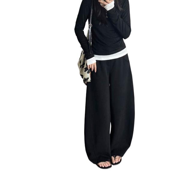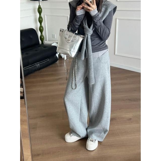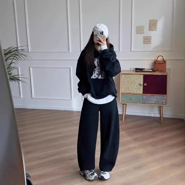 漫語 鐮刀神褲加絨香蕉褲女冬季加厚彎刀闊腿長褲休閑運動衛褲直筒寬松