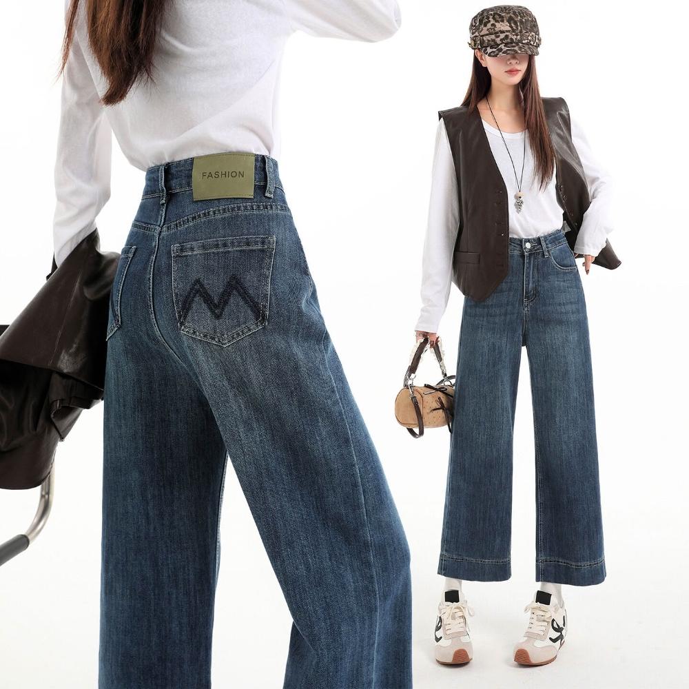 漫語 九分牛仔褲女秋冬加絨保暖小個子高腰窄版闊腿奶奶褲百搭直筒褲子
