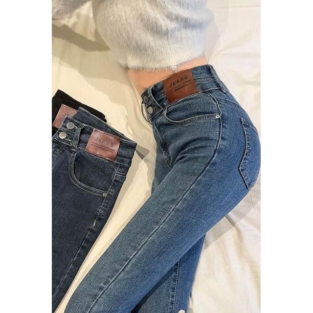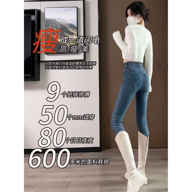漫語 復古高腰小腳牛仔褲女緊身顯2025新款秋冬加絨彈力鉛筆牛仔褲子