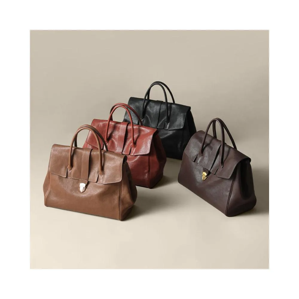 漫語 裘真手提公文包女士真皮復古大容量通勤頭層植鞣牛皮包包